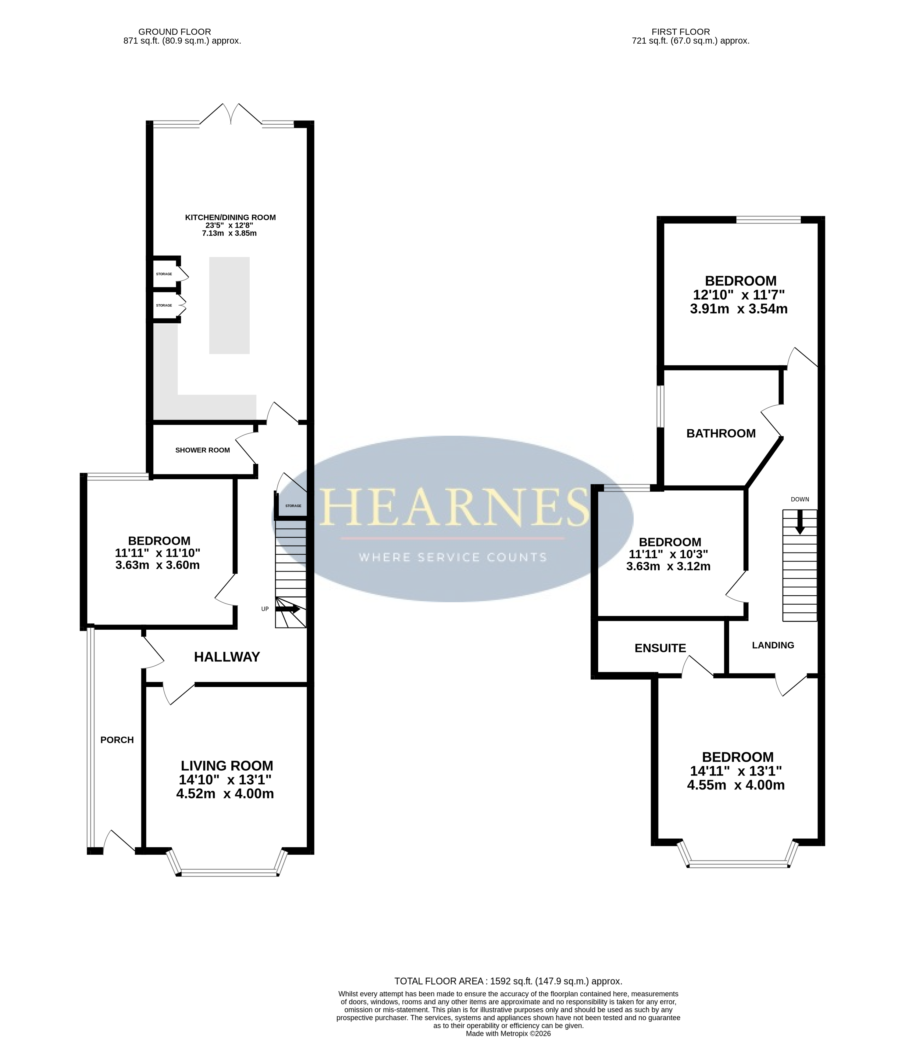 AGENTS NOTE: The heating system, mains and appliances have not been tested by Hearnes Estate Agents. Any areas, measurements or distances are approximate. The text, photographs and plans are for guidance only and are not necessarily comprehensive. Whilst reasonable endeavours have been made to ensure that the information given in our sales particulars are as accurate as possible, this information has been provided to us by the seller and is not guaranteed. Any intending buyer should not rely upon the information we have supplied and should satisfy themselves by inspection, searches, enquiries, and survey as to the correctness of each statement before making a financial or legal commitment. We have not checked the legal documentation to verify the legal status, including the lease term and ground rent and escalation of ground rent of the property (where applicable). A buyer must not rely upon the information provided until it has been verified by their own solicitors.