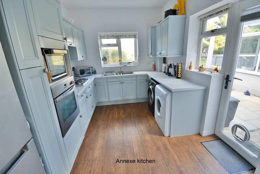 This 2,300sq ft extremely light, spacious and versatile 1930’s bungalow has been substantially enlarged to create a one bedroom self-contained annexe, which has its own private entrance. The plot is also a particular feature, as the rear garden measures approximately 160’ in length.