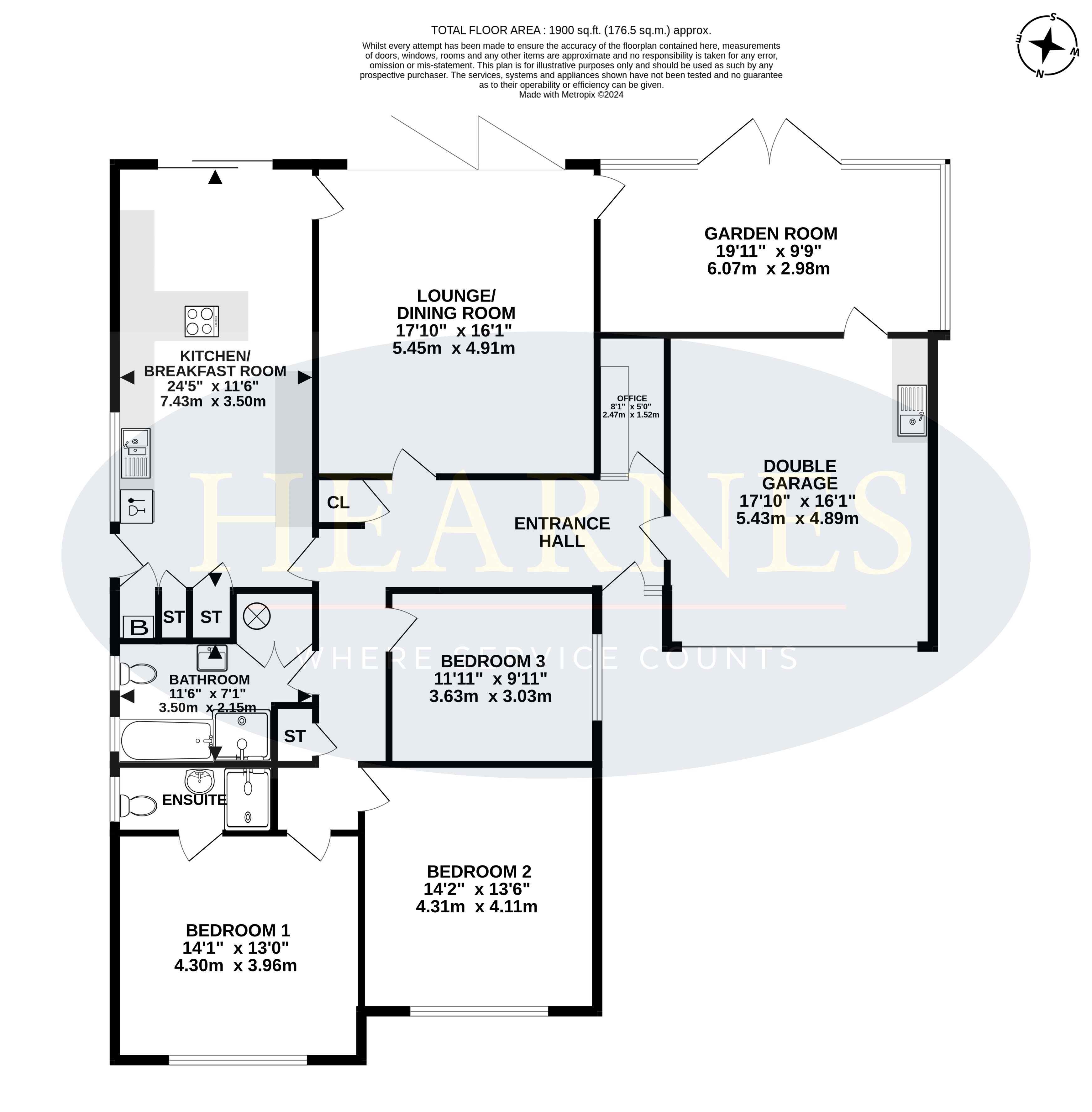 • 19ft garden room with sliding patio doors leading out onto the rear garden and an internal door leading through into the double garage