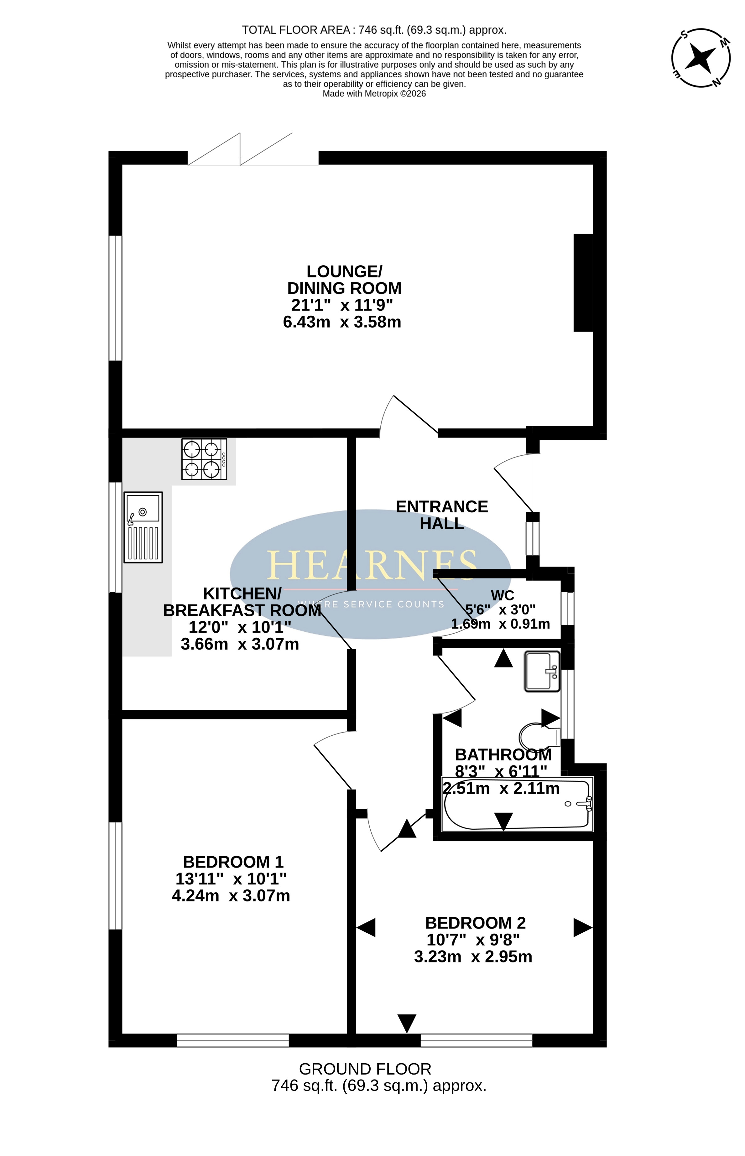 AGENTS NOTES: The heating system, mains and appliances have not been tested by Hearnes Estate Agents. Any areas, measurements or distances are approximate. The text, photographs and plans are for guidance only and are not necessarily comprehensive. Whilst reasonable endeavours have been made to ensure that the information in our sales particulars are as accurate as possible, this information has been provided for us by the seller and is not guaranteed. Any intending buyer should not rely on the information we have supplied and should satisfy themselves by inspection, searches, enquiries and survey as to the correctness of each statement before making a financial or legal commitment. We have not checked the legal documentation to verify the legal status, including the leased term and ground rent and escalation of ground rent of the property (where applicable). A buyer must not rely upon the information provided until it has been verified by their own solicitors.
