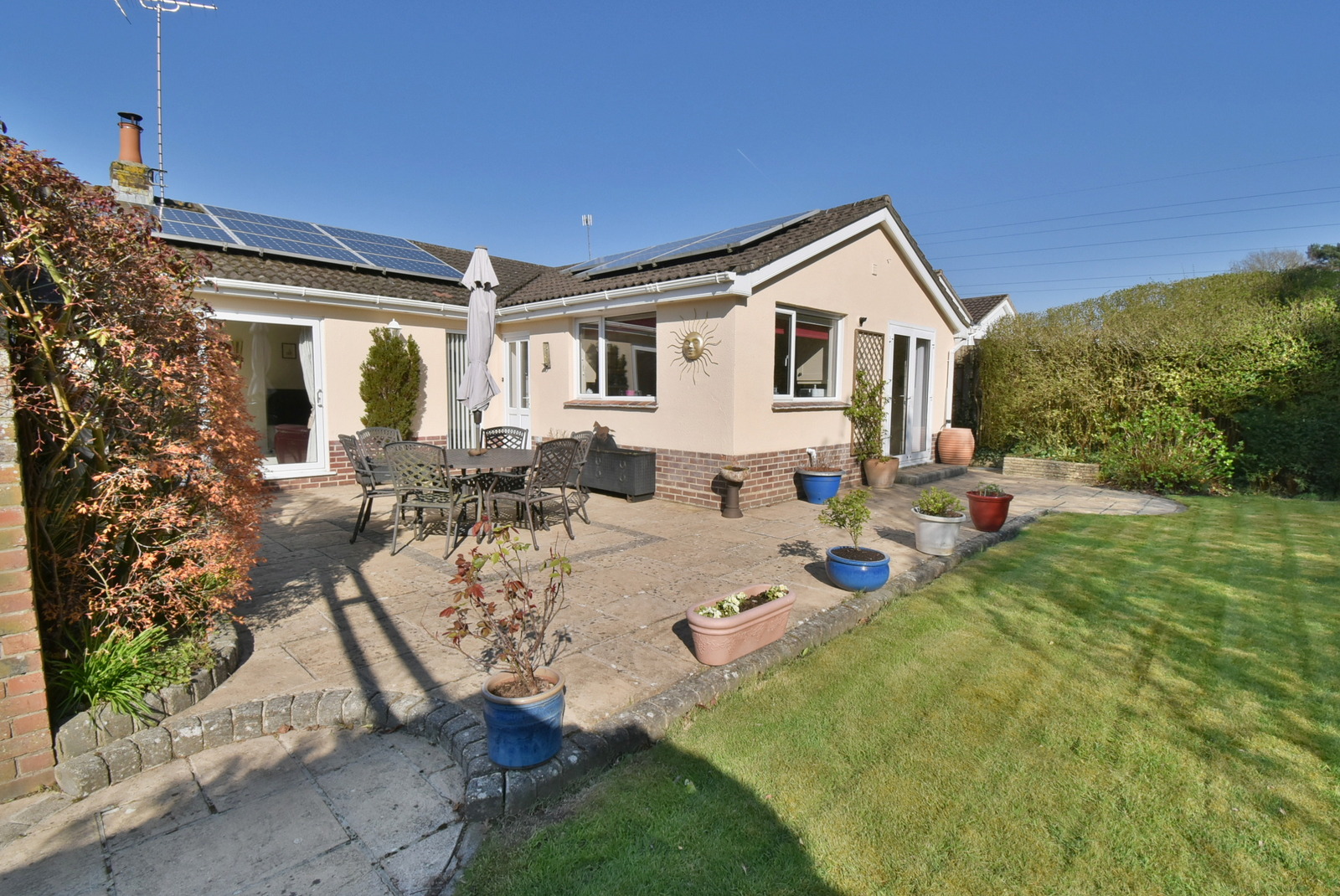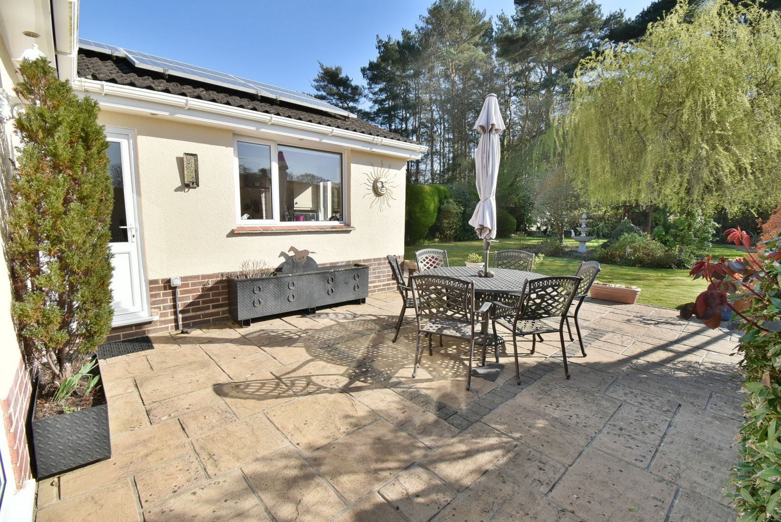 This exceptional detached bungalow provides 1,705 sq ft of living space together with an impressive outbuilding/garage that could provide a self-contained annexe facility, set in a beautifully landscaped southerly facing garden backing onto woodland walks through Ferndown Common.