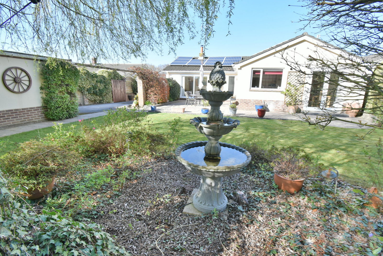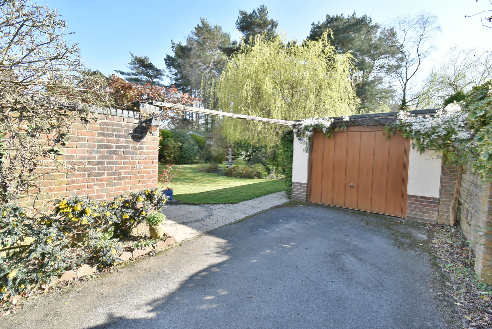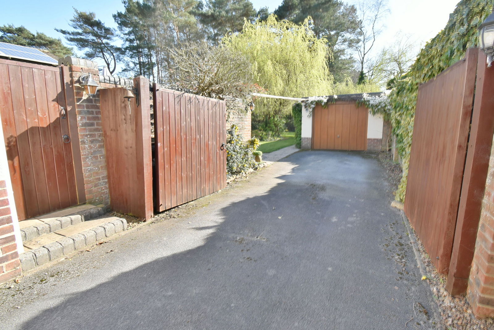 • Approximately 60ft x 55ft Front garden and driveway - Carriage style in and out driveway leading around a section of lawn and mature bushes. A further area of side driveway provides ideal for storage of a motorhome, with a timber gate leading to the side patio and timber double gates to the garage