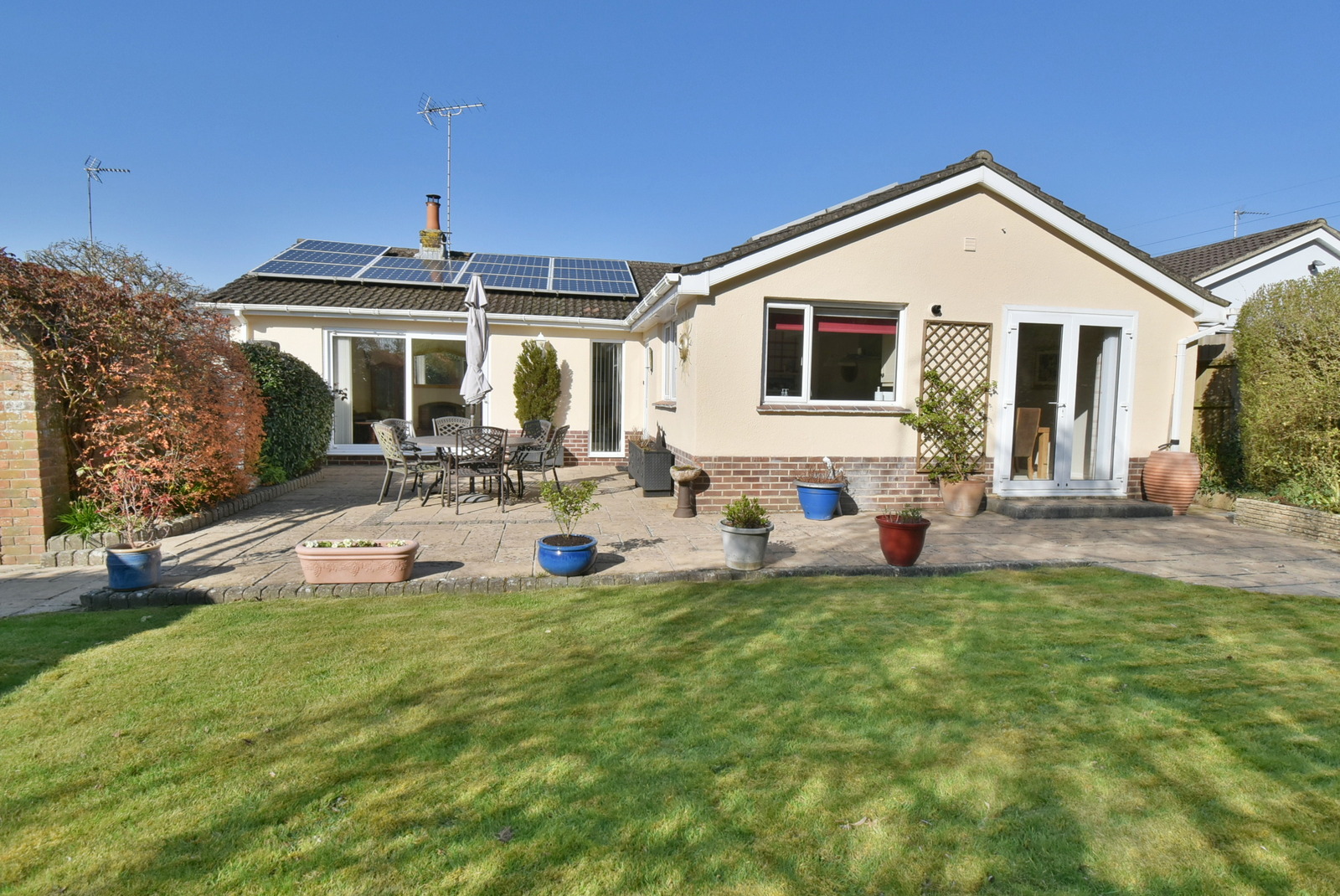 Other benefits include solid oak doors, gas central heating, double glazing, privately owned solar panels, in and out driveway with parking and a side driveway for several vehicles leading to solid timber secure double gates, with space for the storage of a motorhome, leading to the detached 36ft x 10ft tandem garage.