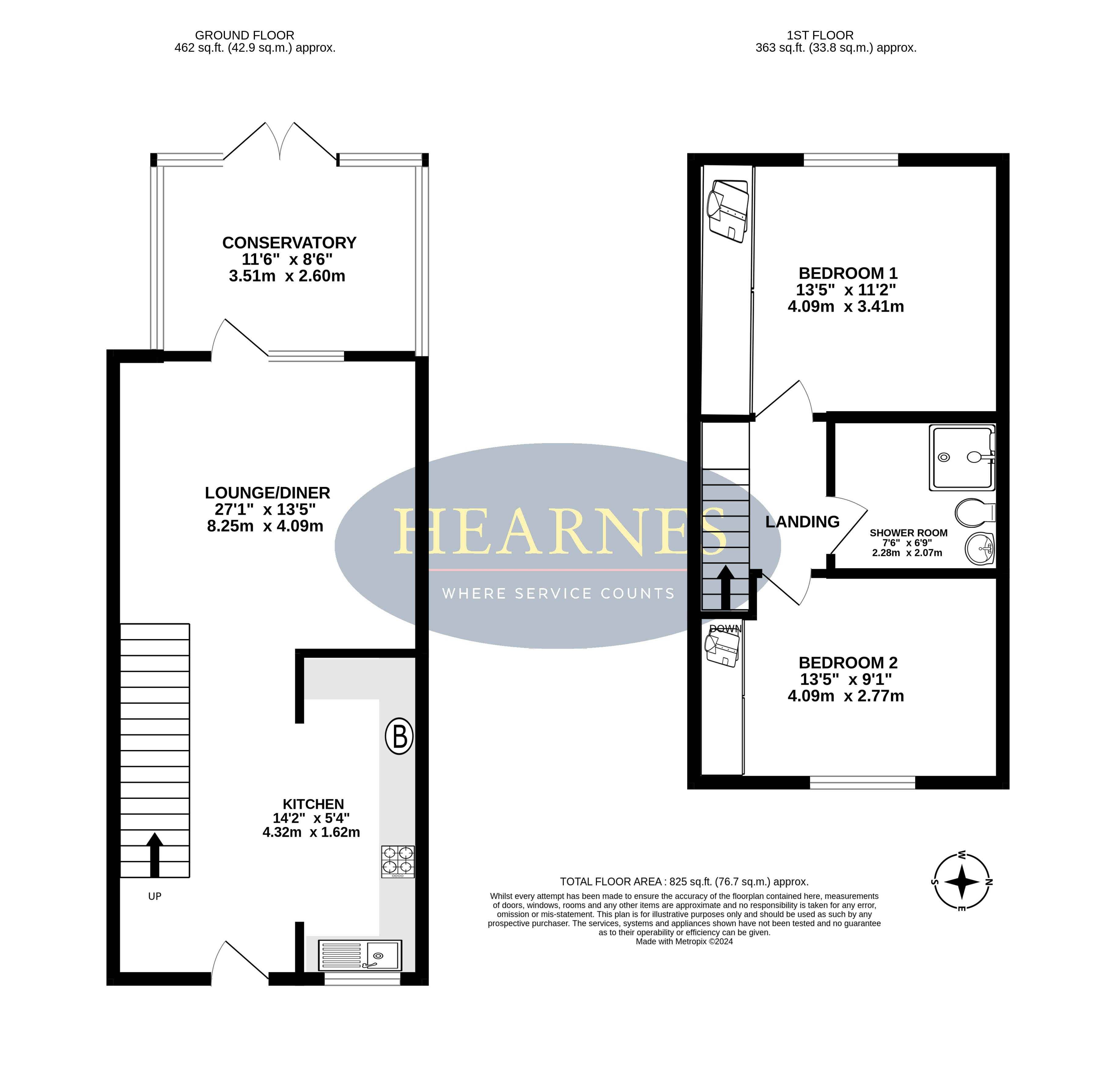 • Separate kitchen and open plan living/dining area with doors out to a conservatory and garden beyond