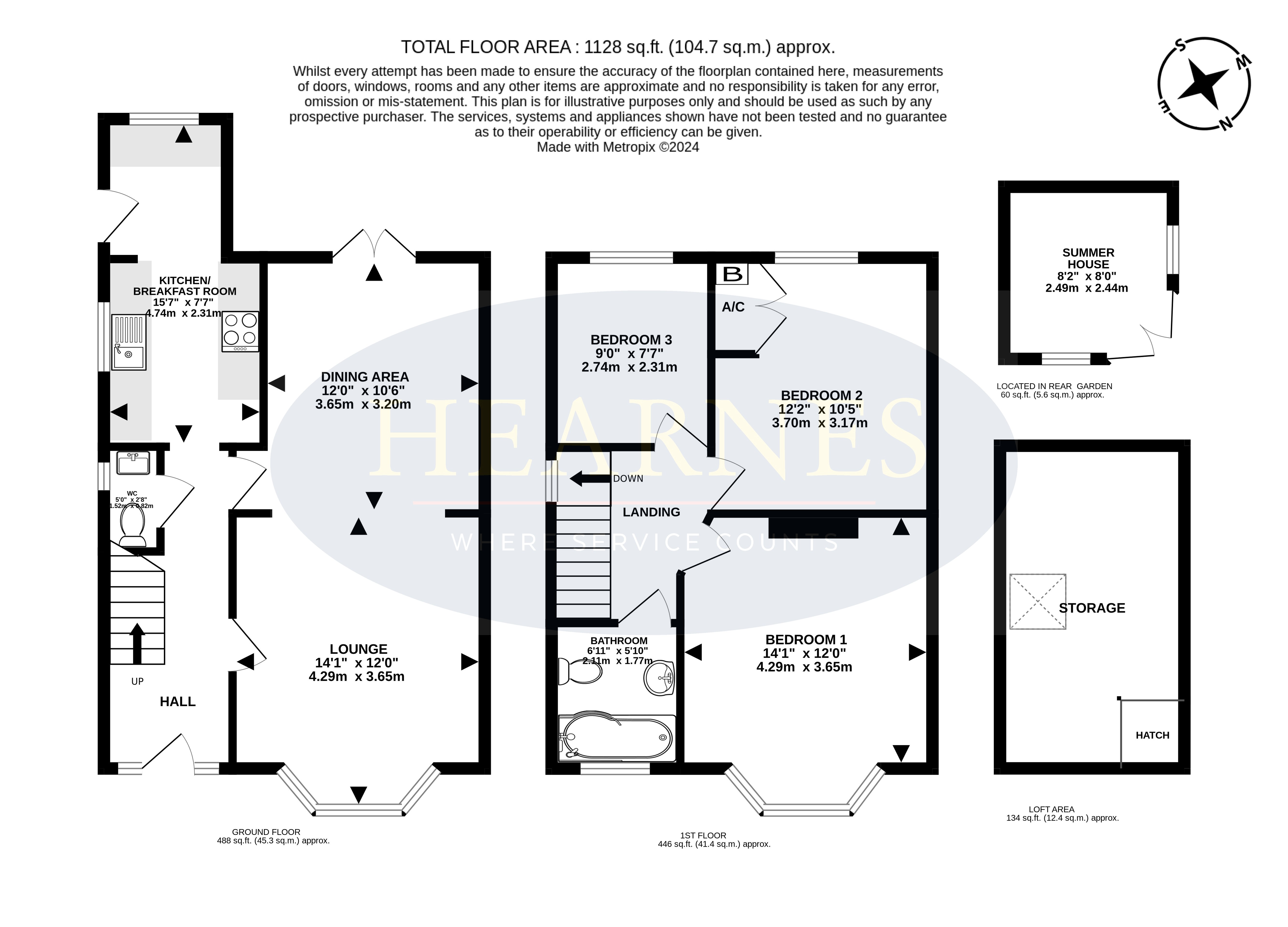 • 3 first floor bedrooms, the main bedroom with a bay window