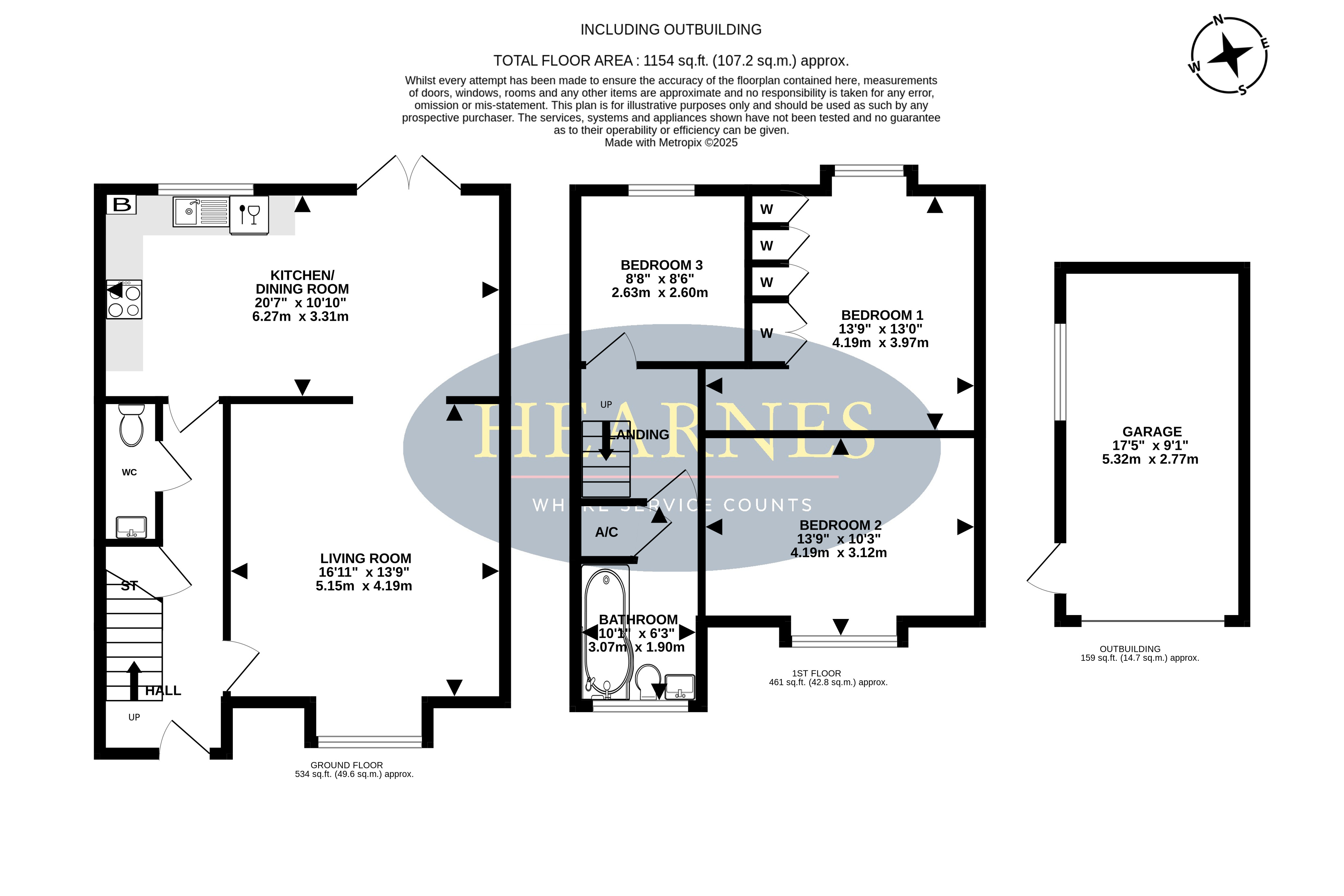 • Single garage with power and light, up and over door, overhead boarded storage and space for tumble dryer
