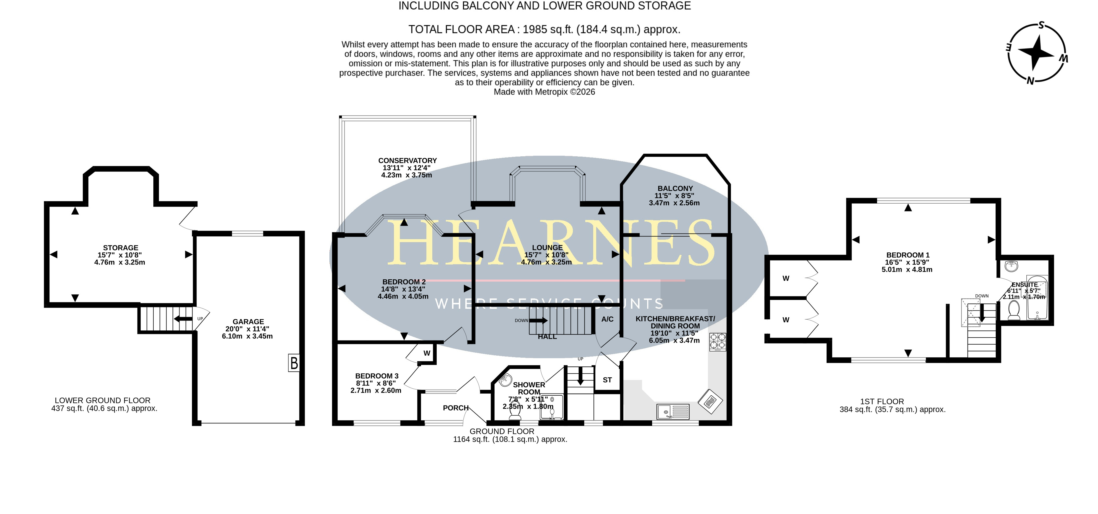 • Lounge with bay window leading to a generous conservatory with access to the garden, both offering the southerly aspect and views