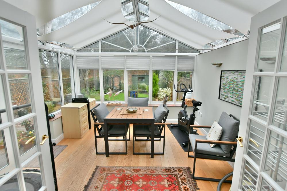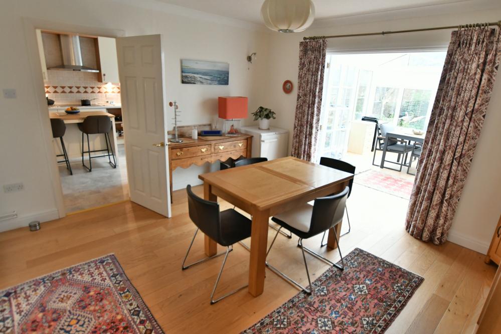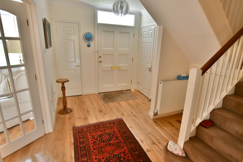 A beautifully refurbished and deceptively spacious four bedroom Georgian style home offering two reception rooms and two bathrooms. The property benefits from a south facing walled garden and a double garage and is ideally set within the sought after Floral Farm Development. • An integral porch leads to spacious entrance hall with cloaks and storage cupboard and modern cloakroom with wash hand basin and WC • Feature engineered oak flooring throughout the hallway, sitting room and dining room • Large sitting room with stone fireplace and inset gas fire, two front aspect windows, double doors to dining room • Generous size dining room flows into a sun filled conservatory with electric underfloor heating and French doors to the garden • Good size kitchen/breakfast room with range of base and eye level units, complementary worktops, inset Blomberg induction hob and extractor hood, Neff electric combination ovens including microwave, space for fridge freezer and dishwasher, laundry cupboard with space and plumbing for washing machine and tumble dryer, door to garden • First floor landing with walk in airing cupboard, retractable ladder to partially boarded loft • Main bedroom with built in wardrobes and en suite shower room • Bedroom two has a range of fitted wardrobes and vanity unit with wash hand basin • Bedroom three has a range of fitted wardrobes, bedroom four currently used as a study with range of fitted furniture including desk, bookcase and cupboards • Superb family bathroom with white three piece suite • Double garage in nearby block with electric door, power and light • Open plan front garden principally laid to lawn. A private south facing walled rear garden has been attractively landscaped with feature glazed outdoor seating area ideal for al fresco dining and timber decking. There is then a shaped lawn, ornamental pond and well stocked flower/shrub borders and fruit trees, garden shed, lockable wrought iron gate giving access to footpath at the rear • Residents Association fees: We understand from the vendor there is a fee of approximately £80 per month to cover communal maintenance, front gardens and window cleaning Canford Magna is a picturesque village nestled along the River Stour on the outskirts of Wimborne. Rich in heritage, it’s home to the historic Canford School and the Lantern pre-school located in the old village hall. The property enjoys easy access to Wimborne town centre and there are convenient routes to Broadstone, Bournemouth and Poole. COUNCIL TAX BAND: F EPC RATING: C AGENTS NOTES: The heating system, mains and appliances have not been tested by Hearnes Estate Agents. Any areas, measurements or distances are approximate. The text, photographs and plans are for guidance only and are not necessarily comprehensive.