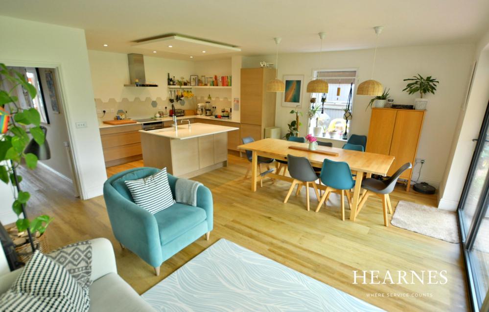 A stunning and deceptively spacious detached family home offering three double bedrooms, a superb kitchen/lifestyle room with separate utility room, main bedroom with luxury en suite shower room. The property is situated on a good size plot with off road parking and studio/garden room. VENDOR SUITED. • Entrance storm porch with tiled flooring • Spacious entrance hallway with built in storage cupboards and door to cloakroom with vanity unit, wash hand basin and WC • Large sitting room with picture rails, feature fireplace and open fire facility, built in book shelving and storage cupboards • Separate utility room with sink, storage cupboard and worktop, space for washing machine and tumble dryer. Further space for cloaks and shelving with built in seating bench, side door to outside • Stunning kitchen/lifestyle room with range of base cupboards and ample drawers, complementary stone worktops with inset hob and electric oven below, central island unit with double sink and hot tap, space for dishwasher and breakfast bar. Space for large table and chairs and sofas, inset wood burner and bifold doors to patio and garden • Three double bedrooms • Generous size main bedroom with built in wardrobes, ornamental fireplace and two front aspect windows overlooking allotments, luxury en suite shower room • Bedroom two with built in wardrobes and feature wood panel walls enjoying a rear aspect and bedroom three with built in storage cupboard • Luxury family bathroom with freestanding bath, separate shower cubicle, floating vanity unit with wash hand basin, WC, part tiled walls and ladder style heated towel rail • • Double glazing and gas heating, electric car charging point, solar panels and Tesla House battery which stores the electricity • Outside: Brick paviour driveway giving off road parking leading to double gates and to the rear garden with further brick paviour area and patio, ideal for al fresco dining. The garden is then laid to lawn with ornamental pond and established raised flower/shrub borders. At the rear a superb studio/garden room can be found. The garden is enclosed by high hedging and panel fencing The location of the property combines the advantages of the town with easy access to open countryside and the river Stour nearby. Wimborne town centre is within walking distance where there are a number of shops, restaurants, public houses and the popular Tivoli theatre. COUNCIL TAX BAND: D EPC RATING: EAGENTS NOTES: AGENTS NOTES: The heating system, mains and appliances have not been tested by Hearnes Estate Agents. Any areas, measurements or distances are approximate. The text, photographs and plans are for guidance only and are not necessarily comprehensive. Whilst reasonable endeavours have been made to ensure that the information in our sales particulars are as accurate as possible, this information has been provided for us by the seller and is not guaranteed. Any intending buyer should not rely on the information we have supplied and should satisfy themselves by inspection, searches, enquiries and survey as to the correctness of each statement before making a financial or legal commitment. We have not checked the legal documentation to verify the legal status, including the leased term and ground rent and escalation of ground rent of the property (where applicable). A buyer must not rely upon the information provided until it has been verified by their own solicitors.