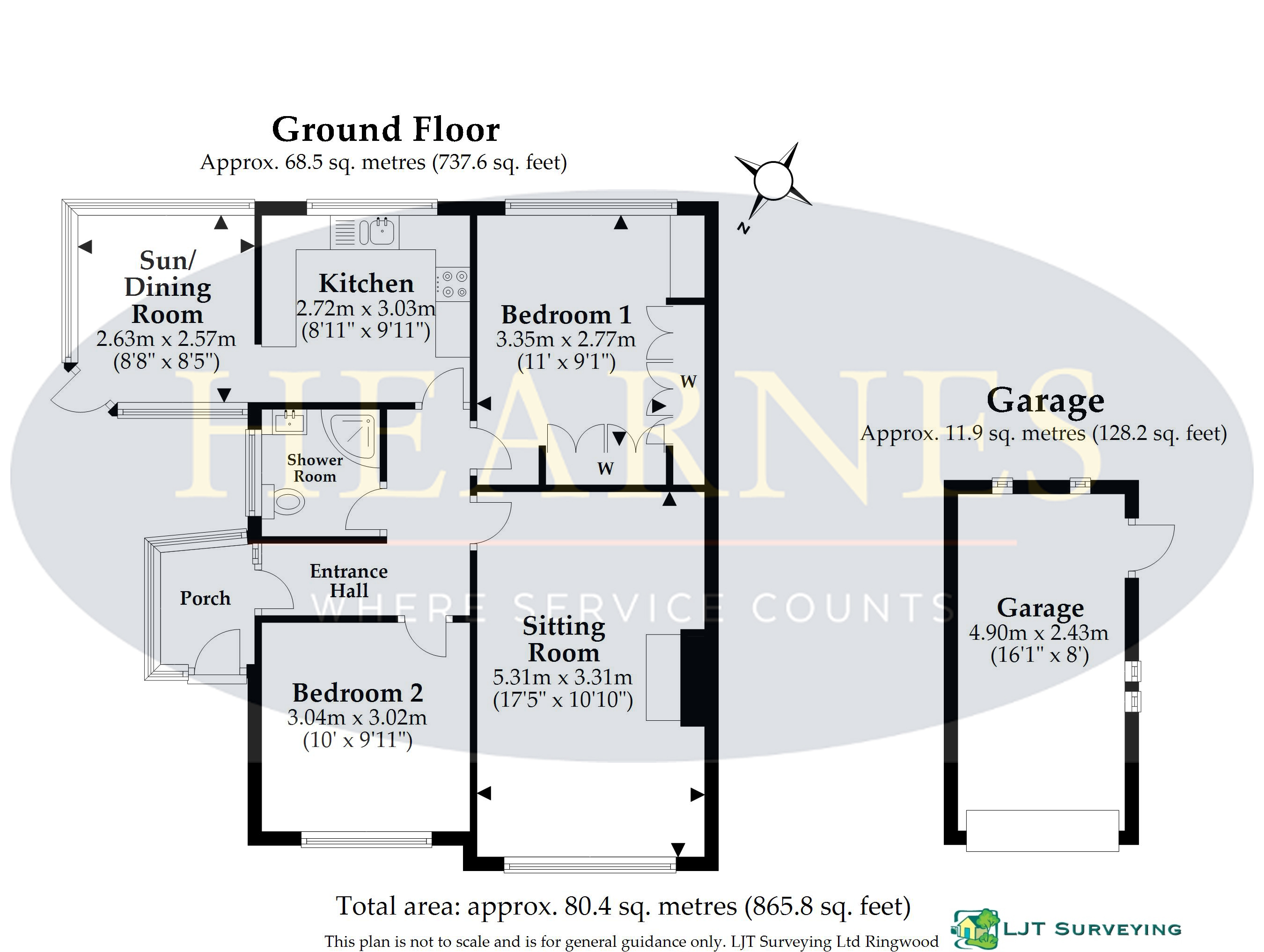 A well presented two double bedroom semi detached bungalow with modern kitchen, ample off-road parking and garage in a cul de sac location. NO FORWARD CHAIN. • Entrance porch leading to L shaped entrance hallway • Spacious sitting room with coal effect gas fireplace with marble hearth and front aspect window • Modern kitchen with range of base and eye level units with complementary worktops, inset gas hob and electric oven below and extractor fan over, freestanding appliances including washing machine, slimline dishwasher and fridge freezer with tiled flooring, square arch into dining room/conservatory with a rear aspect window • Dining room/conservatory with matching tiled flooring with windows and door to the garden • Two double bedrooms: main bedroom with fitted bedroom furniture • Shower room with corner shower cubicle, vanity unit with wash hand basin, WC, ladder style heated towel rail, mirror fronted medicine cabinet and fully tiled walls and flooring • Double glazing and gas heating • Outside: tarmac driveway giving ample off-road parking with double gates leading to garage. The front garden is laid to lawn and the rear garden has a patio area and lawn with greenhouse and garden shed. The garden is enclosed by panel fencing with access gate leading onto Wimborne Road West Martindale Avenue is a popular location and is approximately 2 1/2 miles from Wimborne town centre where there are a number of shops, restaurants, public houses and the popular Tivoli Theatre. EPC RATING: - COUNCIL TAX BAND: CAGENTS NOTES: The heating system, mains and appliances have not been tested by Hearnes Estate Agents. Any areas, measurements or distances are approximate. The text, photographs and plans are for guidance only and are not necessarily comprehensive. Whilst reasonable endeavours have been made to ensure that the information in our sales particulars are as accurate as possible, this information has been provided for us by the seller and is not guaranteed. Any intending buyer should not rely on the information we have supplied and should satisfy themselves by inspection, searches, enquiries and survey as to the correctness of each statement before making a financial or legal commitment. We have not checked the legal documentation to verify the legal status, including the leased term and ground rent and escalation of ground rent of the property (where applicable). A buyer must not rely upon the information provided until it has been verified by their own solicitors.