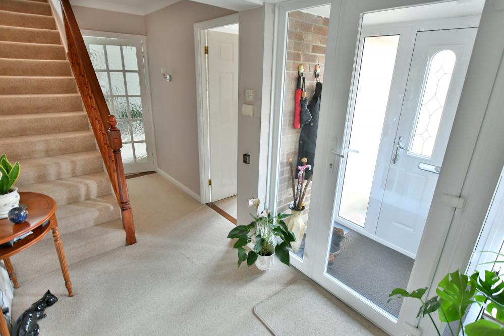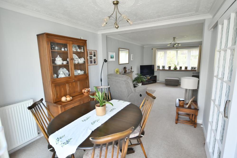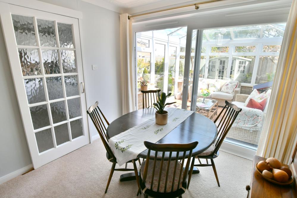 An immaculately presented two/three bedroom chalet style home featuring a modern kitchen and bathrooms. The property boasts a superb sitting/dining room that flows seamlessly into a bright sun conservatory creating an ideal space for both relaxing and entertaining. Additional benefits include a separate utility room, off road parking and garage. Situated on a generous plot with beautifully landscaped garden tucked away in a quiet cul de sac location offering both privacy and convenience. • Enclosed entrance porch leading into hallway • Good size entrance hallway with under stairs cupboard and separate cloaks cupboard • Spacious sitting/dining room featuring a stone fireplace with inset gas fire, front bay window and patio doors opening into the conservatory • Bright UPVC sun conservatory overlooking the garden with French doors leading out to the rear patio/garden • Modern kitchen fitted with a range of base and eye level units and drawers with complementary worktops, inset gas hob with extractor fan over, electric oven and microwave, integrated fridge and dishwasher, rear aspect window providing natural light, door leading to inner hallway • Contemporary cloakroom with enclosed WC, vanity unit with wash hand basin, ladder style heated towel rail • Utility room with butler sink and granite worktop and cupboard below, space for washing machine and freezer • Ground floor bedroom/study with front aspect • Two double first floor bedrooms both with fitted bedroom furniture • Main bedroom with walk in wardrobe and fully tiled en suite shower room • Family bathroom with modern white three piece suite, bath with electric shower over, wash hand basin, heated ladder style towel rail and WC • Double glazing and gas heating • VENDOR SUITED • Outside: Brick paviour driveway providing off road parking leading to garage. Beautifully landscaped front and rear gardens with lawns complemented by well stocked flower, shrub and tree borders. The rear garden features a vegetable patch, garden shed and summerhouse enclosed by panel fencing for privacy This property is situated in a popular location, conveniently located close to local GP, bus routes, local shops, parks and well sought after schools. Wimborne town centre is approximately 1.8 miles away offering further amenities including shops, restaurants, coffee shops and the popular Art Deco Tivoli theatre. COUNCIL TAX BAND: D EPC RATING: DAGENTS NOTES: The heating system, mains and appliances have not been tested by Hearnes Estate Agents. Any areas, measurements or distances are approximate. The text, photographs and plans are for guidance only and are not necessarily comprehensive. Whilst reasonable endeavours have been made to ensure that the information in our sales particulars are as accurate as possible, this information has been provided for us by the seller and is not guaranteed. Any intending buyer should not rely on the information we have supplied and should satisfy themselves by inspection, searches, enquiries and survey as to the correctness of each statement before making a financial or legal commitment. We have not checked the legal documentation to verify the legal status, including the leased term and ground rent and escalation of ground rent of the property (where applicable). A buyer must not rely upon the information provided until it has been verified by their own solicitors.