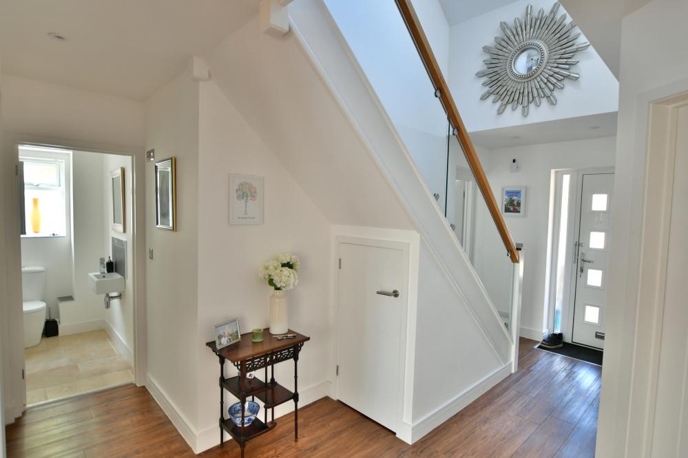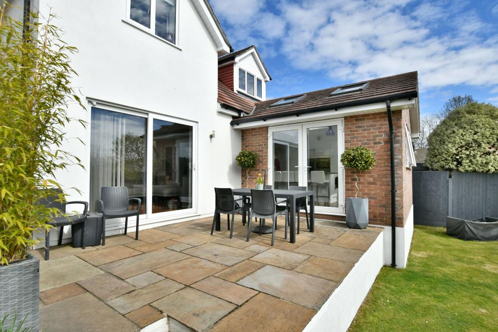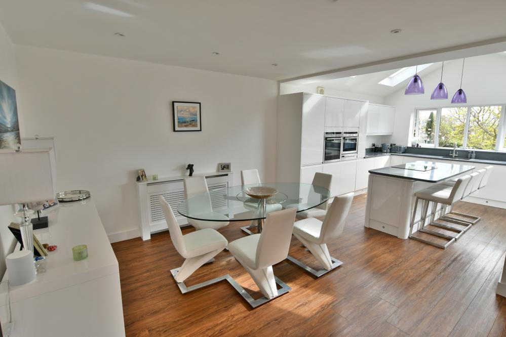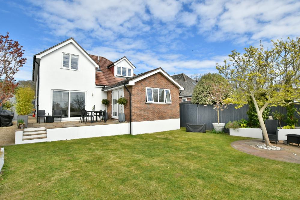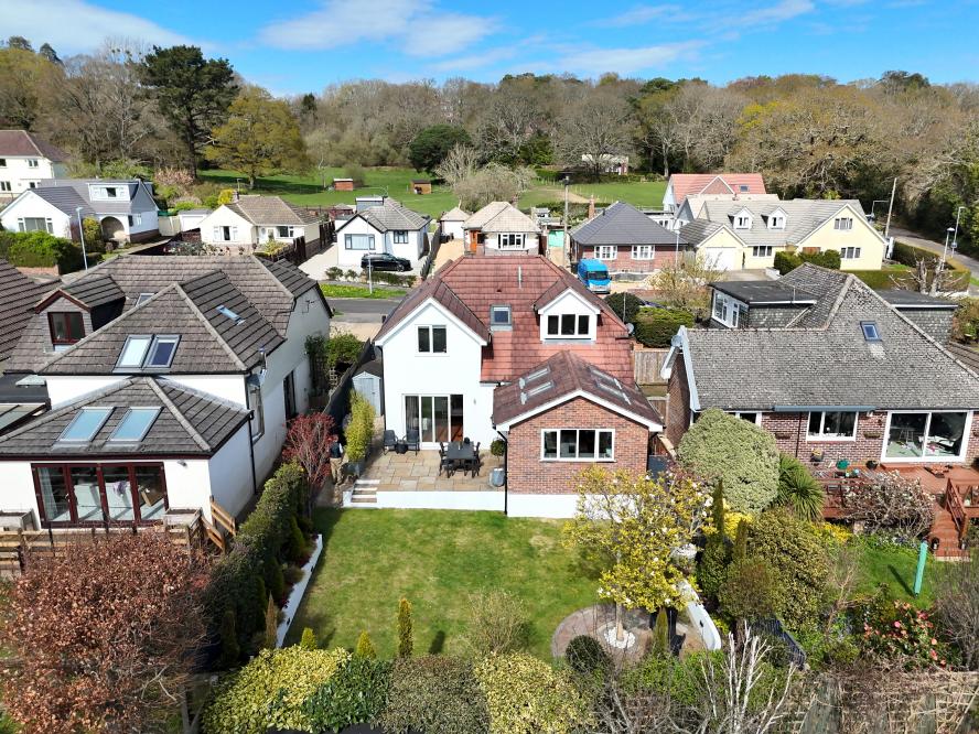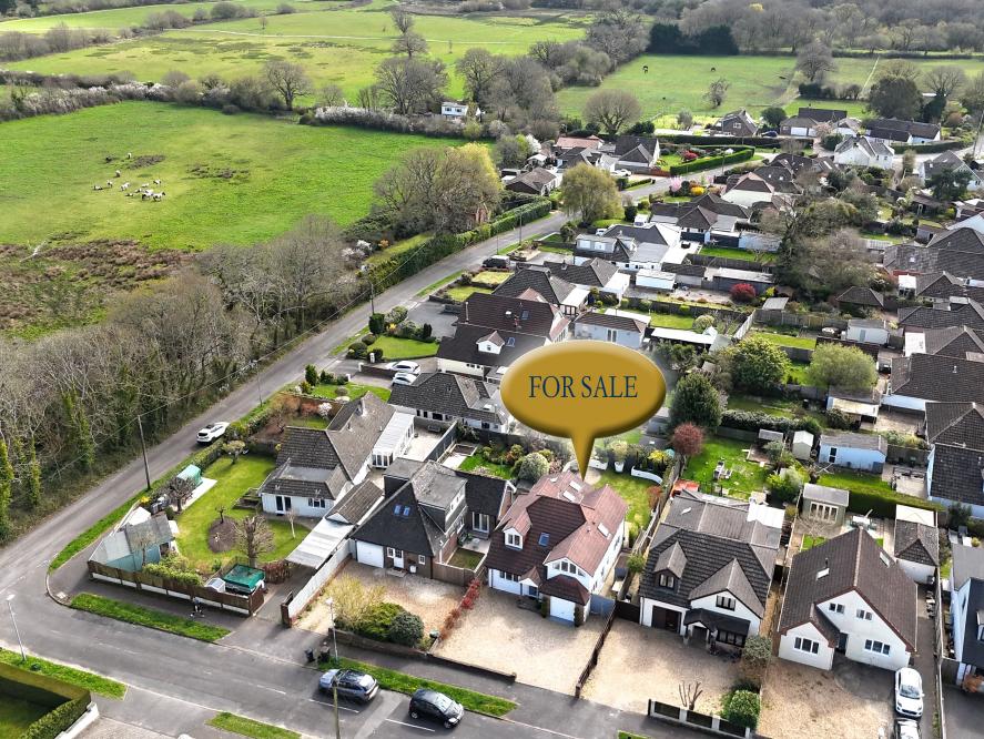 A beautifully presented, semi-rural detached chalet style home maintained and in immaculate condition throughout. This impressive property offers four well proportioned bedrooms including a spacious main bedroom with generous size en suite shower room, with ample off-road parking. At the heart of the home is a stunning open plan kitchen/sitting/dining area designed to overlook the landscaped garden and terrace, perfect for entertaining. Additional features include a separate utility room and good size study. Set in a desirable semi rural location close to countryside walks. • Completely rebuilt in 2013 from a bungalow to a house with all new plumbing/heating/plastering/electrics and flooring • Spacious entrance hallway with built in storage cupboard and further under stairs storage, feature luxury wood effect flooring throughout hallway, sitting/dining room/kitchen and study • Contemporary cloakroom with WC, floating vanity unit and ladder style heated towel rail • Bedroom four/snug enjoying a front aspect • Study with side window and door to garden, can easily be converted back to garage • Stunning open plan kitchen/sitting/dining area. Superb kitchen with range of white gloss base and eye level units and pan drawers with granite worktops, matching central island with inset induction hob, adjacent oven and microwave oven and warming drawer, integrated dishwasher and fridge freezer, breakfast bar, water softener, feature vaulted ceiling with Velux windows, rear aspect window and French doors to patio • Sitting/dining area for sofas and dining table and chairs with patio doors leading onto patio and garden • Good size utility room with matching white gloss units with complementary worktops, space for washing machine and additional freezer, tiled flooring, side aspect window • Three generous size bedrooms • Superb dual aspect main bedroom with far reaching views with built in mirror frosted wardrobes enjoying a dual aspect and large en suite shower room with corner shower cubicle, floating vanity unit with wash hand basin, WC and ladder style heated towel rail • Family bathroom with free standing shaped bath, separate shower cubicle, floating vanity unit, WC and ladder style heated towel rail • Shingle driveway provides off road parking for numerous cars leading to storage garage with space for bikes etc, side gates give access to rear garden • Superb landscaped south facing rear garden with a high degree of privacy with terrace patio area ideal for al fresco dining and further patio area at the rear of the garden, good size lawn and an abundance of mature trees, shrubs and flower borders The location of the property combines the advantage of town with easy access to open countryside and the river Stour nearby. Wimborne town centre is within approximately two miles where there are a number of shops, restaurants, public houses and the popular Tivoli theatre. COUNCIL TAX BAND: E EPC RATING: CAGENTS NOTES: The heating system, mains and appliances have not been tested by Hearnes Estate Agents. Any areas, measurements or distances are approximate. The text, photographs and plans are for guidance only and are not necessarily comprehensive. Whilst reasonable endeavours have been made to ensure that the information in our sales particulars are as accurate as possible, this information has been provided for us by the seller and is not guaranteed. Any intending buyer should not rely on the information we have supplied and should satisfy themselves by inspection, searches, enquiries and survey as to the correctness of each statement before making a financial or legal commitment. We have not checked the legal documentation to verify the legal status, including the leased term and ground rent and escalation of ground rent of the property (where applicable). A buyer must not rely upon the information provided until it has been verified by their own solicitors.