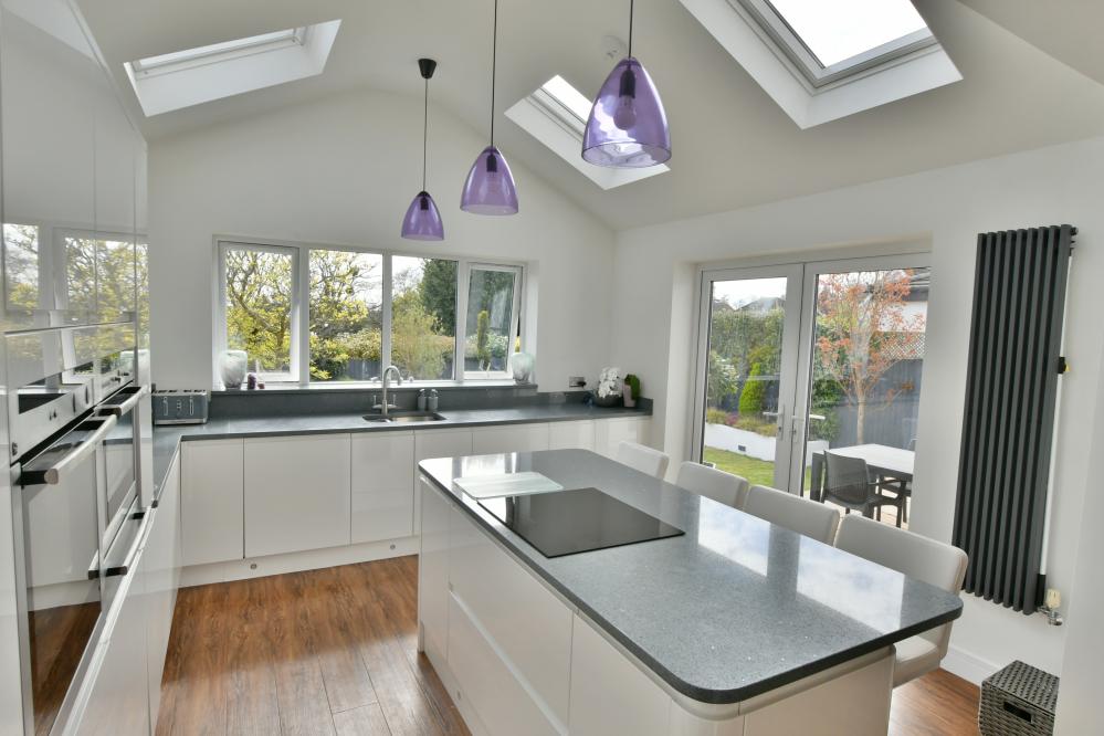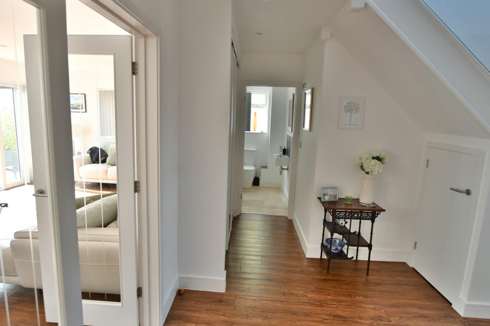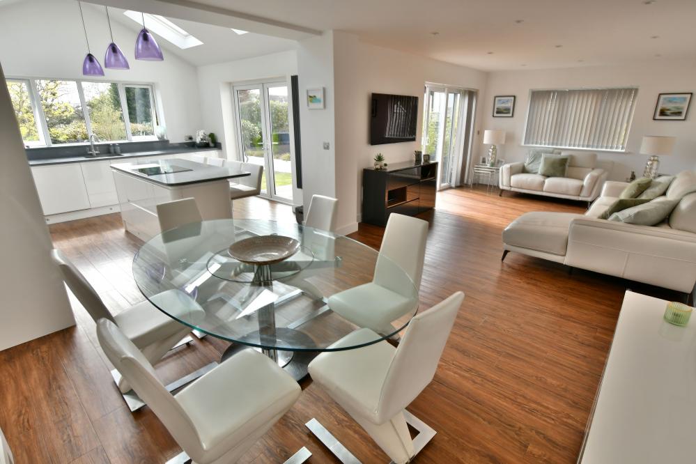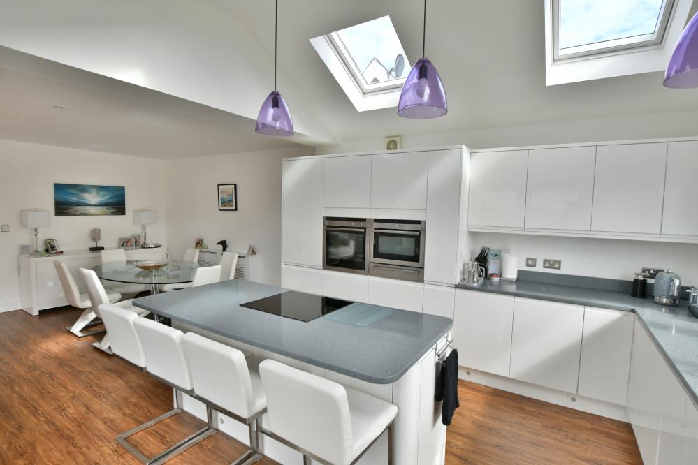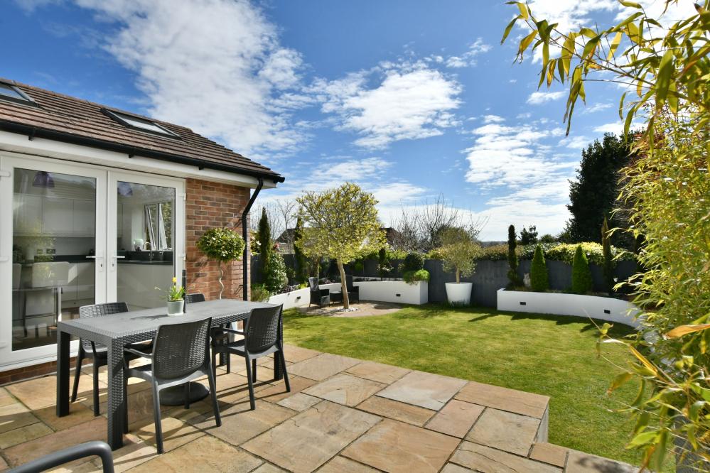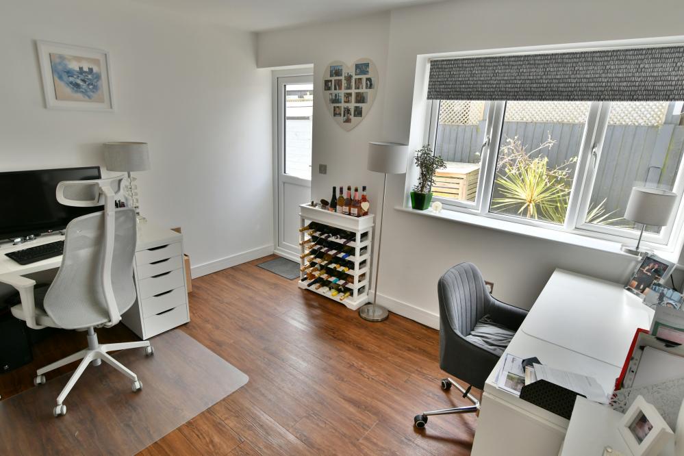 A beautifully presented, semi-rural detached chalet style home maintained and in immaculate condition throughout. This impressive property offers four well proportioned bedrooms including a spacious main bedroom with generous size en suite shower room, with ample off-road parking. At the heart of the home is a stunning open plan kitchen/sitting/dining area designed to overlook the landscaped garden and terrace, perfect for entertaining. Additional features include a separate utility room and good size study. Set in a desirable semi rural location close to countryside walks. • Completely rebuilt in 2013 from a bungalow to a house with all new plumbing/heating/plastering/electrics and flooring • Spacious entrance hallway with built in storage cupboard and further under stairs storage, feature luxury wood effect flooring throughout hallway, sitting/dining room/kitchen and study • Contemporary cloakroom with WC, floating vanity unit and ladder style heated towel rail • Bedroom four/snug enjoying a front aspect • Study with side window and door to garden, can easily be converted back to garage • Stunning open plan kitchen/sitting/dining area. Superb kitchen with range of white gloss base and eye level units and pan drawers with granite worktops, matching central island with inset induction hob, adjacent oven and microwave oven and warming drawer, integrated dishwasher and fridge freezer, breakfast bar, water softener, feature vaulted ceiling with Velux windows, rear aspect window and French doors to patio • Sitting/dining area for sofas and dining table and chairs with patio doors leading onto patio and garden • Good size utility room with matching white gloss units with complementary worktops, space for washing machine and additional freezer, tiled flooring, side aspect window • Three generous size bedrooms • Superb dual aspect main bedroom with far reaching views with built in mirror frosted wardrobes enjoying a dual aspect and large en suite shower room with corner shower cubicle, floating vanity unit with wash hand basin, WC and ladder style heated towel rail • Family bathroom with free standing shaped bath, separate shower cubicle, floating vanity unit, WC and ladder style heated towel rail • Shingle driveway provides off road parking for numerous cars leading to storage garage with space for bikes etc, side gates give access to rear garden • Superb landscaped south facing rear garden with a high degree of privacy with terrace patio area ideal for al fresco dining and further patio area at the rear of the garden, good size lawn and an abundance of mature trees, shrubs and flower borders The location of the property combines the advantage of town with easy access to open countryside and the river Stour nearby. Wimborne town centre is within approximately two miles where there are a number of shops, restaurants, public houses and the popular Tivoli theatre. COUNCIL TAX BAND: E EPC RATING: CAGENTS NOTES: The heating system, mains and appliances have not been tested by Hearnes Estate Agents. Any areas, measurements or distances are approximate. The text, photographs and plans are for guidance only and are not necessarily comprehensive. Whilst reasonable endeavours have been made to ensure that the information in our sales particulars are as accurate as possible, this information has been provided for us by the seller and is not guaranteed. Any intending buyer should not rely on the information we have supplied and should satisfy themselves by inspection, searches, enquiries and survey as to the correctness of each statement before making a financial or legal commitment. We have not checked the legal documentation to verify the legal status, including the leased term and ground rent and escalation of ground rent of the property (where applicable). A buyer must not rely upon the information provided until it has been verified by their own solicitors.
