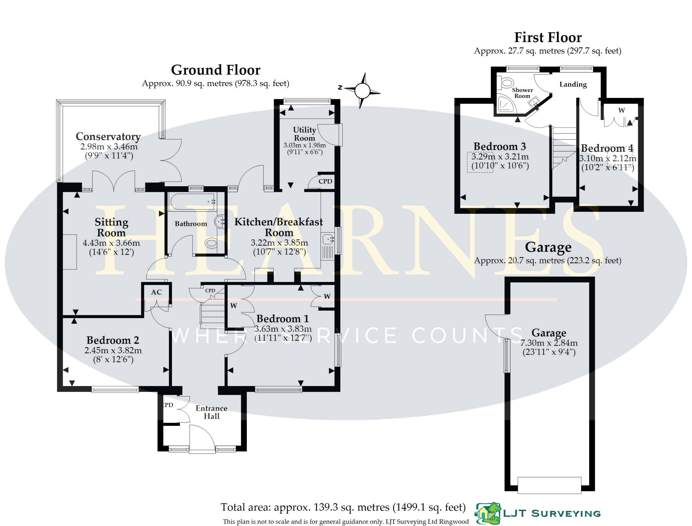 A spacious and well presented four bedroom chalet style home offering versatile accommodation with sun conservatory, generous size driveway with ample parking, a tandem length storage garage and a secluded rear garden ideally located within easy reach of the town centre and local amenities. • Large entrance hallway with cloaks cupboard and under stairs storage cupboard • Spacious sitting room with feature stone fireplace with inset wood burner, double doors to sun conservatory with views overlooking rear garden • Good size kitchen/breakfast room with range of base and eye level units and pan drawers with complementary worktops, space for appliances and table and chairs, dual aspect window and door to garden • Two ground floor bedrooms with the main bedroom having built in wardrobes • Ground floor modern bathroom with fully tiled walls and white three piece suite • First floor landing with rear aspect window • Two first floor bedrooms with built in wardrobes and Velux windows • Shower room with corner shower cubicle, wash hand basin and WC • Double glazing and gas heating • Outside: Shingle driveway giving off road parking for numerous cars, pedestrian side access leading to tandem length storage garage. Rear garden with patio area and decking. The garden is then laid to lawn with an abundance of shrub and plant borders enjoying a good degree of privacy and seclusion Hayes Lane is a popular residential location and is approximately 2 1/2 miles from Wimborne town centre where there are a number of shops, restaurants, public houses and the popular Tivoli Theatre. COUNCIL TAX BAND: D EPC RATING: DAGENTS NOTES: AGENTS NOTES: The heating system, mains and appliances have not been tested by Hearnes Estate Agents. Any areas, measurements or distances are approximate. The text, photographs and plans are for guidance only and are not necessarily comprehensive. Whilst reasonable endeavours have been made to ensure that the information in our sales particulars are as accurate as possible, this information has been provided for us by the seller and is not guaranteed. Any intending buyer should not rely on the information we have supplied and should satisfy themselves by inspection, searches, enquiries and survey as to the correctness of each statement before making a financial or legal commitment. We have not checked the legal documentation to verify the legal status, including the leased term and ground rent and escalation of ground rent of the property (where applicable). A buyer must not rely upon the information provided until it has been verified by their own solicitors.