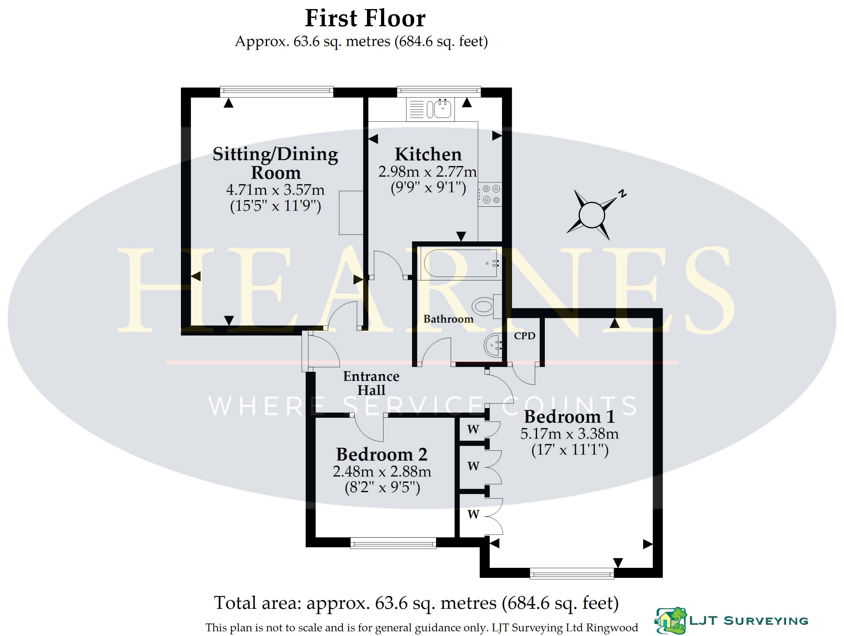 A well presented and spacious two double bedroom purpose built first floor apartment within a short level walk to the town centre. • Communal entrance hallway with stairs to first floor • ‘L’ shaped entrance hallway with meter cupboard and access to a large loft space mostly boarded for storage with light • Good size sitting room with westerly facing window overlooking the river to the rear • Modern kitchen with base and eye level units and complementary worktops, ceramic hob and electric oven with extractor fan over, Bosch washing machine and fridge freezer, cupboard housing Glow worm gas fired combination boiler, rear aspect window • Two bedrooms, main bedroom with built in wardrobes and separate storage cupboard • Modern bathroom with white three piece suite, electric wall mounted shower over bath, wash hand basin and WC • Double glazing and gas heating • Outside: Communal well maintained gardens with residents parking bays on a ‘first come first served’ basis • Tenure: Share of Freehold: We understand from the vendor the lease is 999 years from March 1967 • Maintenance: We understand from the vendor the service charge is approximately £2,000 per annum paid to Minster Property Management Ltd The location of the property combines the advantage of town with easy access to open countryside and the river Stour nearby. Wimborne town centre is within a short distance where there are a number of shops, restaurants, public houses and the popular Tivoli theatre. COUNCIL TAX BAND: B EPC RATING: CAGENTS NOTES: AGENTS NOTES: The heating system, mains and appliances have not been tested by Hearnes Estate Agents. Any areas, measurements or distances are approximate. The text, photographs and plans are for guidance only and are not necessarily comprehensive. Whilst reasonable endeavours have been made to ensure that the information in our sales particulars are as accurate as possible, this information has been provided for us by the seller and is not guaranteed. Any intending buyer should not rely on the information we have supplied and should satisfy themselves by inspection, searches, enquiries and survey as to the correctness of each statement before making a financial or legal commitment. We have not checked the legal documentation to verify the legal status, including the leased term and ground rent and escalation of ground rent of the property (where applicable). A buyer must not rely upon the information provided until it has been verified by their own solicitors.