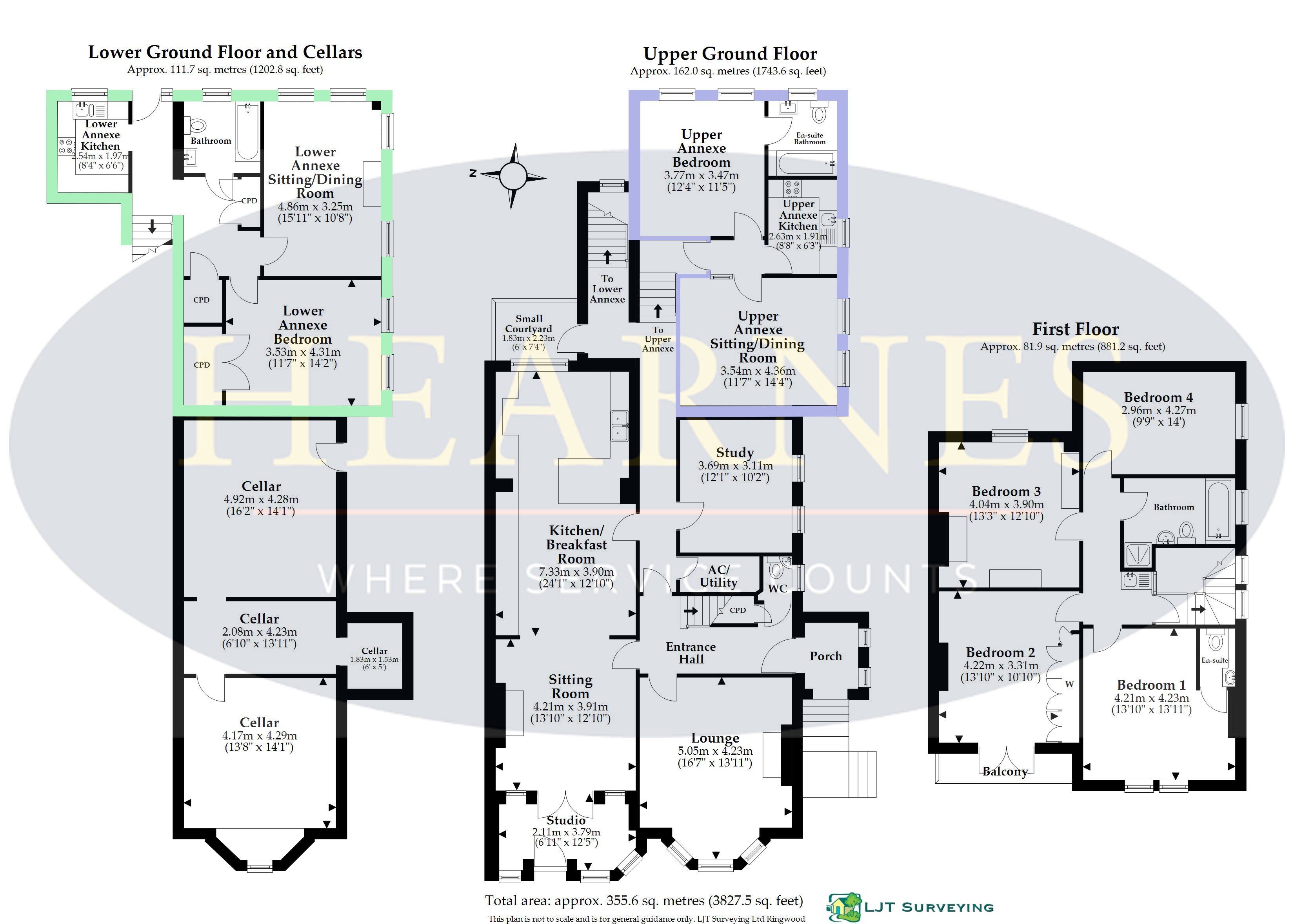 A four double bedroom, three reception room Victorian family home, set on a quarter of an acre plot including two double bedroom annexes (one with garden access) offering over 3,000 sq ft of accommodation, located half a mile from the town centre with ample off-road parking and a garage. COUNCIL TAX BAND: E EPC RATING: C • Entrance porch with original tiled flooring • Reception room with under stairs storage and cloakroom • Cloakroom with wall mounted wash hand basin and WC • Spacious open plan kitchen/dining/living room with a wood burner and studio with stairs to the front garden. The kitchen is finished in a range of matt cream units with complementary worktops including space for a range cooker. Additionally, an integrated dishwasher, larder fridge, two freezers and a breakfast bar. • Separate sitting room with feature fireplace and coal effect gas fire, large bay window and high ceilings • Separate utility room/airing cupboard with wash hand basin • Spacious study with twin windows • A quarter turn staircase providing access to the landing • Four double bedrooms: three bedrooms with garden views and all with ample space for wardrobes and one bedroom with a balcony • Family bathroom including a bath and separate shower cubicle, pedestal wash hand basin, heated towel rail and WC • At the rear of the reception hall are two half staircases providing access to both self-contained annexes • Cellar with slight restricted head room, offering plentiful storage space Lower annexe • Spacious entrance hall with two storage cupboards and door to garden • Kitchen finished in a range of white units with complementary worktops, cooker with ceramic hob and integrated fridge freezer • Spacious double bedroom with twin windows and space for wardrobes • Dual aspect sitting room with feature fireplace and coal effect gas fire and garden views • Family bathroom including bath with shower over, pedestal wash hand basin and WC Upper annexe • Entrance hall with loft access • Kitchen finished in a range of high gloss white units with complementary worktops, cooker with ceramic hob and space for fridge • Large double bedroom with twin windows overlooking the garden • En suite bathroom: bath with shower over, pedestal wash hand basin and WC Outside The front and rear gardens have been landscaped with a large range of mature shrubs and trees and the 130ft rear garden has lawn area and vegetable plots. The property is located half a mile from the town centre with ample off-road parking and a garage.AGENTS NOTES: The heating system, mains and appliances have not been tested by Hearnes Estate Agents. Any areas, measurements or distances are approximate. The text, photographs and plans are for guidance only and are not necessarily comprehensive. Whilst reasonable endeavours have been made to ensure that the information in our sales particulars are as accurate as possible, this information has been provided for us by the seller and is not guaranteed. Any intending buyer should not rely on the information we have supplied and should satisfy themselves by inspection, searches, enquiries and survey as to the correctness of each statement before making a financial or legal commitment. We have not checked the legal documentation to verify the legal status, including the leased term and ground rent and escalation of ground rent of the property (where applicable). A buyer must not rely upon the information provided until it has been verified by their own solicitors.
