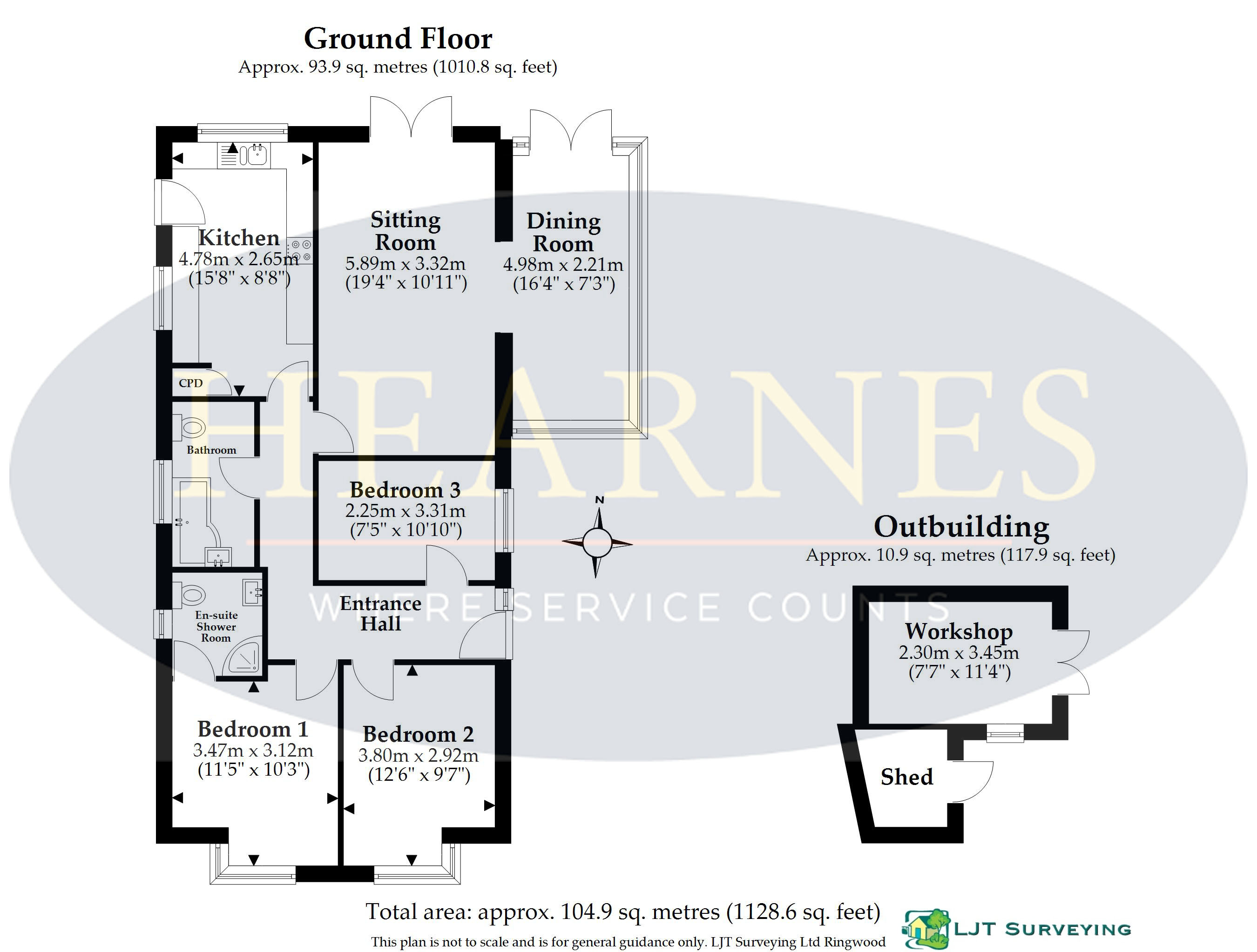 A recently refurbished and extended, immaculately presented three double bedroom, two reception room, two bathroom detached bungalow set on a generous size plot offering ample parking and private landscaped garden all within easy reach of the town centre as well as countryside walks. • Spacious entrance hall with loft access and high quality laminate flooring • A superb kitchen with a range of anthracite grey coloured units, complementary worktops, four ring gas hob and extractor hood, built-in Bosch oven and combination microwave, integrated fridge freezer, water softener and space for washing machine • Open plan sitting room and orangery with high quality laminate flooring throughout, two sets of double glazed French doors opening onto the patio, the orangery includes four skylight windows • Three double bedrooms, two with luxury fitted carpets • Main bedroom with new en suite shower room, corner shower cubicle, wash hand basin set in a vanity unit, back lit mirror, heated towel rail and WC • Contemporary family bathroom with ‘p’ shaped bath and shower over, wash hand basin set in a vanity unit, back lit mirror, wall mounted storage cupboard, heated towel rail and WC • Landscaped walled garden offers a private tranquil space to relax and entertain • Off road parking Merley Ways is a popular and quiet residential road approximately ¾ of a mile from Wimborne town centre where coffee shops, shops, restaurants and the Tivoli theatre can be found. There are delightful walks along the River Stour and good local shopping facilities and doctors’ surgery in nearby Oakley. COUNCIL TAX BAND: D EPC RATING: DAGENTS NOTES: AGENTS NOTES: The heating system, mains and appliances have not been tested by Hearnes Estate Agents. Any areas, measurements or distances are approximate. The text, photographs and plans are for guidance only and are not necessarily comprehensive. Whilst reasonable endeavours have been made to ensure that the information in our sales particulars are as accurate as possible, this information has been provided for us by the seller and is not guaranteed. Any intending buyer should not rely on the information we have supplied and should satisfy themselves by inspection, searches, enquiries and survey as to the correctness of each statement before making a financial or legal commitment. We have not checked the legal documentation to verify the legal status, including the leased term and ground rent and escalation of ground rent of the property (where applicable). A buyer must not rely upon the information provided until it has been verified by their own solicitors.