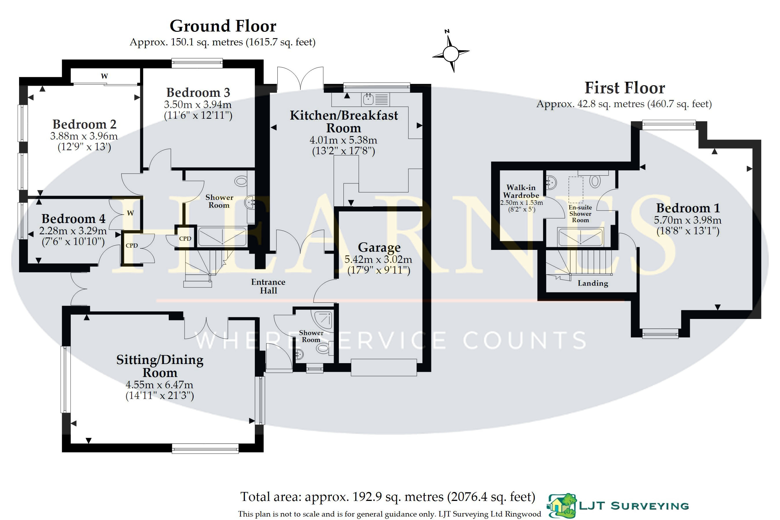 A deceptively spacious and well-presented chalet style property offering four bedrooms with a modern kitchen/breakfast room and bathrooms, ample off-road parking and an oversized garage, situated on a good size plot in a desirable location. NO FORWARD CHAIN. • Spacious entrance hallway with cloaks and storage cupboard, Parque flooring throughout the hallway and sitting room with French doors leading to garden • Cloakroom/shower room with corner shower cubicle, wash hand basin and WC, ladder style heated towel rail and fully tiled walls • Spacious sitting room enjoying a dual aspect • Large kitchen/breakfast room with range of base and eye level units with complementary worktops, integrated dishwasher and breakfast bar, space for appliances, extractor fan, tiled flooring, rear aspect window and French doors to garden and patio • Three good size ground floor bedrooms • Modern shower room with double shower cubicle, vanity unit with wash hand basin and WC, ladder style heated towel rail, further cupboard with display shelving and fully tiled walls • Integral oversized garage housing wall mounted boiler • First floor main bedroom enjoying a dual aspect with large modern en suite shower room with adjoining walk in dressing room with access to loft space • Double glazing and gas heating • Outside: a shingle driveway giving ample off-road parking leading to garage with brick parva pathways. The gardens are laid to lawn with flower, shrub and tree borders. Patio area ideal for alfresco dining with summerhouse and shed, situated on a good size plot. This sought after area of Colehill offers excellent schooling and local shops, parish church, library, hairdresser and within easy reach to lovely walks into Colehill Plantation. The thriving town of Wimborne is approximately 2 miles away offering more extensive shopping and leisure facilities as well as numerous restaurants and public houses. EPC RATING: C COUNCIL TAX BAND: EAGENTS NOTES: The heating system, mains and appliances have not been tested by Hearnes Estate Agents. Any areas, measurements or distances are approximate. The text, photographs and plans are for guidance only and are not necessarily comprehensive. Whilst reasonable endeavours have been made to ensure that the information in our sales particulars are as accurate as possible, this information has been provided for us by the seller and is not guaranteed. Any intending buyer should not rely on the information we have supplied and should satisfy themselves by inspection, searches, enquiries and survey as to the correctness of each statement before making a financial or legal commitment. We have not checked the legal documentation to verify the legal status, including the leased term and ground rent and escalation of ground rent of the property (where applicable). A buyer must not rely upon the information provided until it has been verified by their own solicitors.