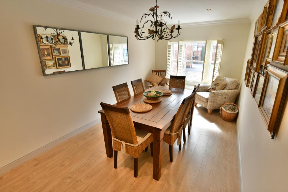 A well-presented end of terrace townhouse offering spacious and versatile accommodation throughout. The property features three generously sized bedrooms, including en suite to main bedroom, situated within an attractive gated development enjoying a convenient location within easy walking distance of Wimborne town centre. NO FORWARD CHAIN. • Spacious entrance hallway with feature wood effect flooring throughout the sitting room and dining room with understairs storage cupboard • Cloakroom with WC, wash hand basin and cupboard housing gas boiler • Good size sitting room with fireplace and inset gas coal effect fire (not tested) and French doors to patio garden • Large dining room with rear aspect and fitted wooden shutters • Kitchen with range of base and eye level units with complementary stone worktops, inset hob with oven below and extractor fan over, integrated dishwasher and space for appliances • Three generous size bedrooms, main bedroom with fitted wardrobes and modern en suite shower room, second bedroom with built in wardrobe and third bedroom currently used as a study with built in bookcase • Family bathroom with three-piece white suite • Double glazing and gas heating • Outside: small patio area bordered by low level walling and balustrade leading to front door. Low maintenance courtyard garden enclosed by brick walling with raised flowerbed borders and access gate to off-road brick paviour parking. Communal electric gates giving access into the development via Pye Lane • Maintenance charge: we understand from the vendor is £200 per annum The location of the property combines the advantage of the town with easy access to open countryside and the river Stour nearby. Wimborne town centre is within walking distance where there are a number of shops, restaurants, public houses and the popular Tivoli theatre. COUNCIL TAX BAND: E EPC RATING: TBCAGENTS NOTES: The heating system, mains and appliances have not been tested by Hearnes Estate Agents. Any areas, measurements or distances are approximate. The text, photographs and plans are for guidance only and are not necessarily comprehensive. Whilst reasonable endeavours have been made to ensure that the information in our sales particulars are as accurate as possible, this information has been provided for us by the seller and is not guaranteed. Any intending buyer should not rely on the information we have supplied and should satisfy themselves by inspection, searches, enquiries and survey as to the correctness of each statement before making a financial or legal commitment. We have not checked the legal documentation to verify the legal status, including the leased term and ground rent and escalation of ground rent of the property (where applicable). A buyer must not rely upon the information provided until it has been verified by their own solicitors.