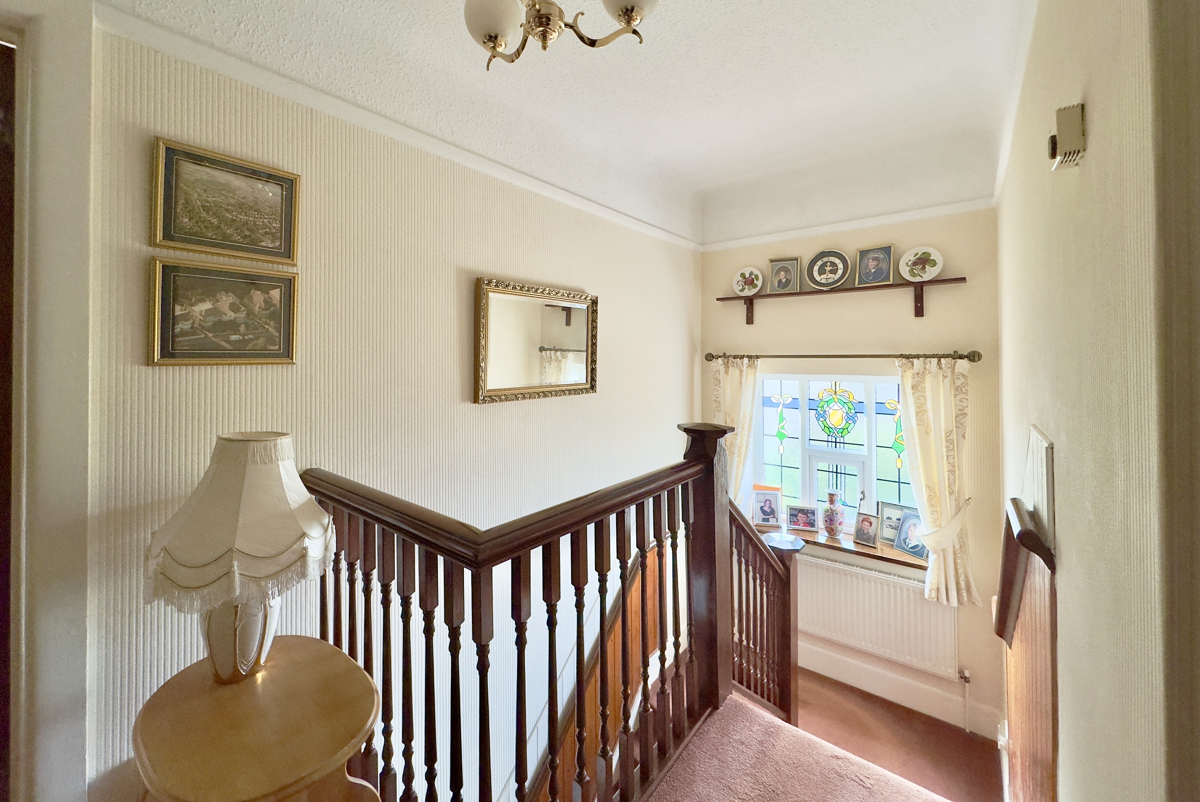 On entering the home through the enclosed porch, you are greeted by a stained glass door that opens into the central hallway. To the left is a bright and spacious living room, opening into a conservatory enjoying elevated views and patio doors to the rear garden. To the right is a separate dining room overlooking the front aspect with a large bay window, which opens through to the kitchen. The kitchen is fitted with a good range of floor and wall units, integrated electric hob and electric oven, and space for a fridge/freezer. A pantry provides access to a useful basement area offering potential for conversion (subject to any necessary consents). Completing the ground floor is a utility room and WC.