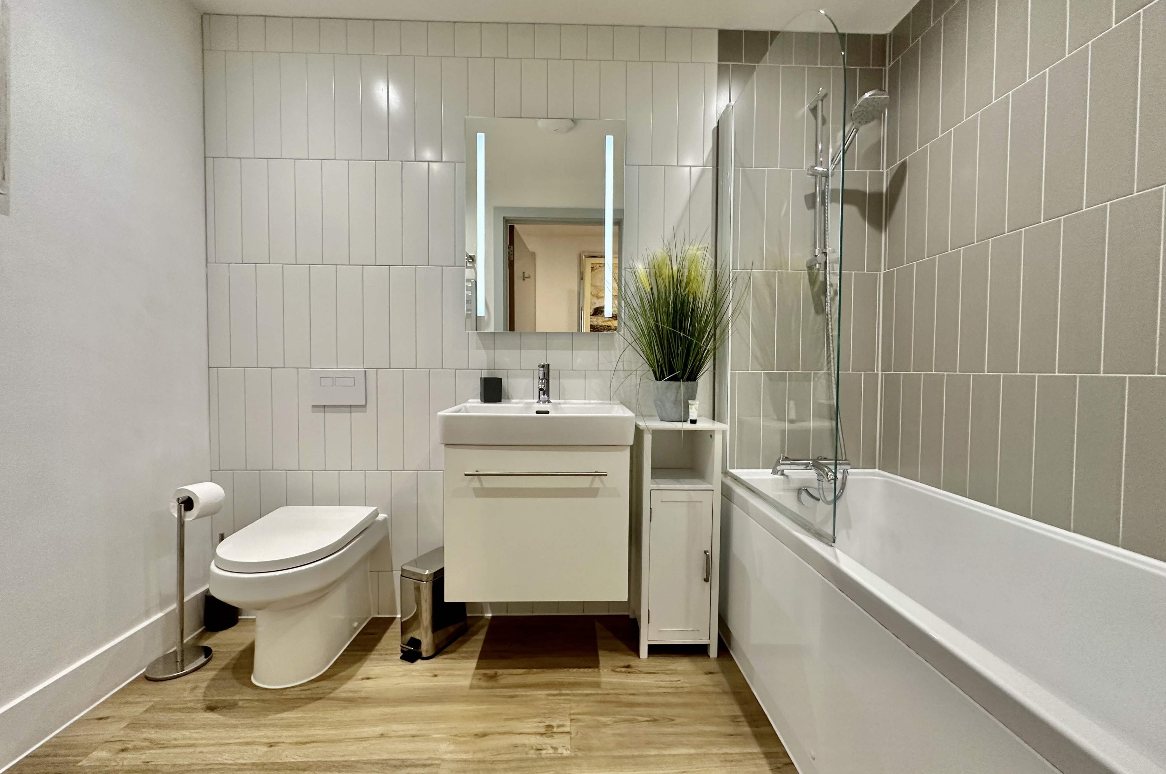 The property's two bedrooms are generously sized double rooms featuring large, floor to ceiling windows providing ample light and a pleasant outlook. The accommodation is complete with a luxury bathroom comprising a WC, wash hand basin and bath with shower over.
