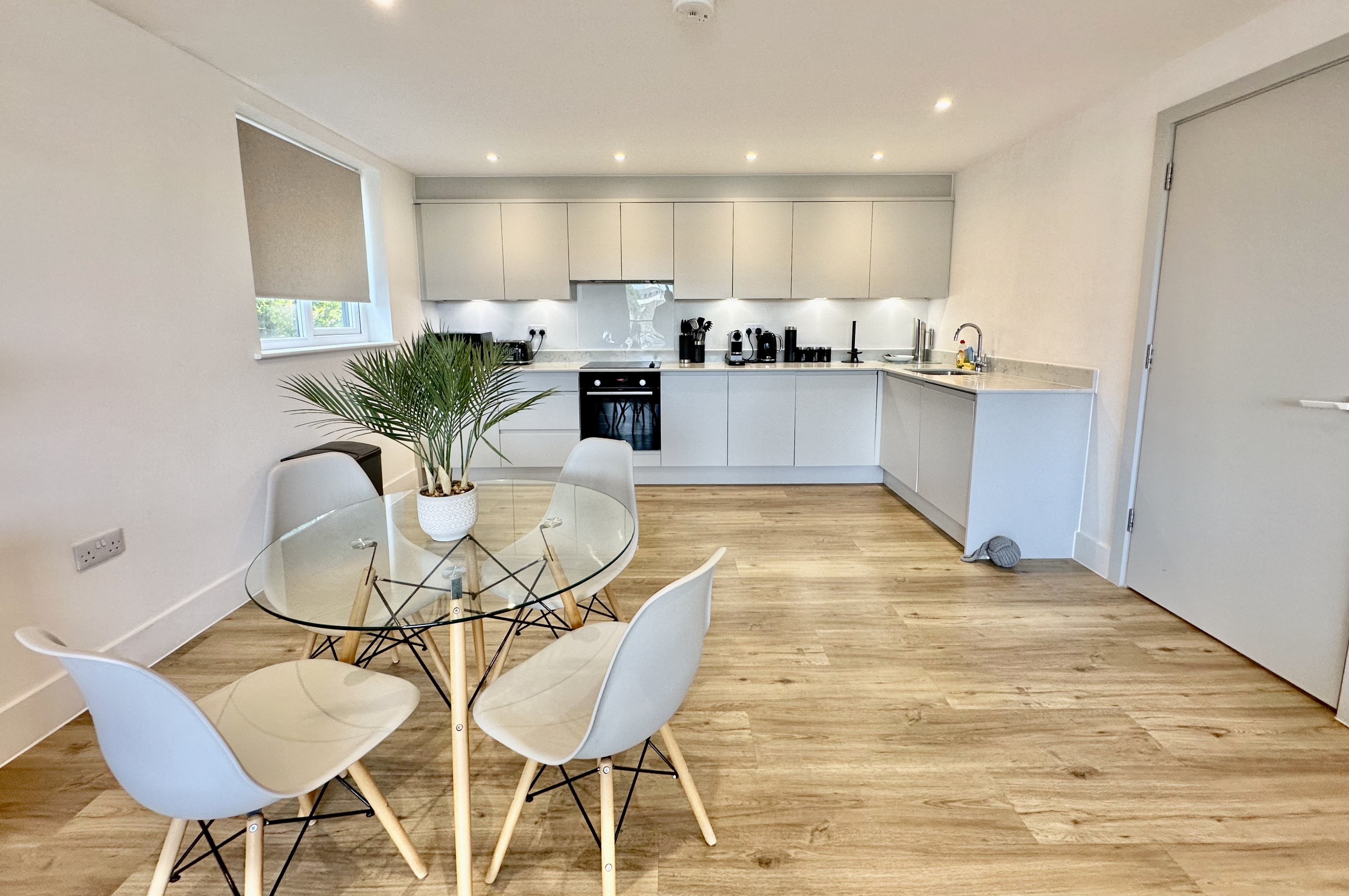 The development is accessed via a secure entry system with a well maintained communal hallway and lift providing access to the first floor and entrance to the apartment. On entering the property a welcoming entrance hall, with useful storage cupboard, leads into a spacious open plan kitchen/dining/living room with sliding doors opening onto a private balcony. The kitchen area offers a range of floor and wall mounted units finished with a matching work surface and selection of integrated appliances.