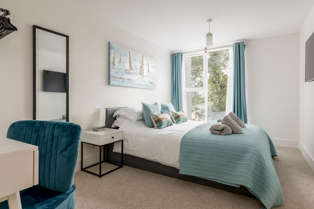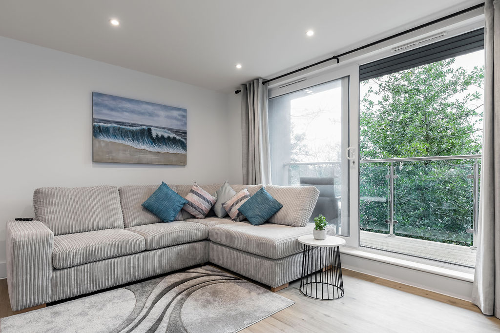 Both bedrooms are generously sized doubles with large floor-to-ceiling windows that provide plenty of natural light and pleasant views. The accommodation is completed by a luxury bathroom comprising a WC, wash hand basin, and bath with shower over. The development also benefits from residents' permit parking.
