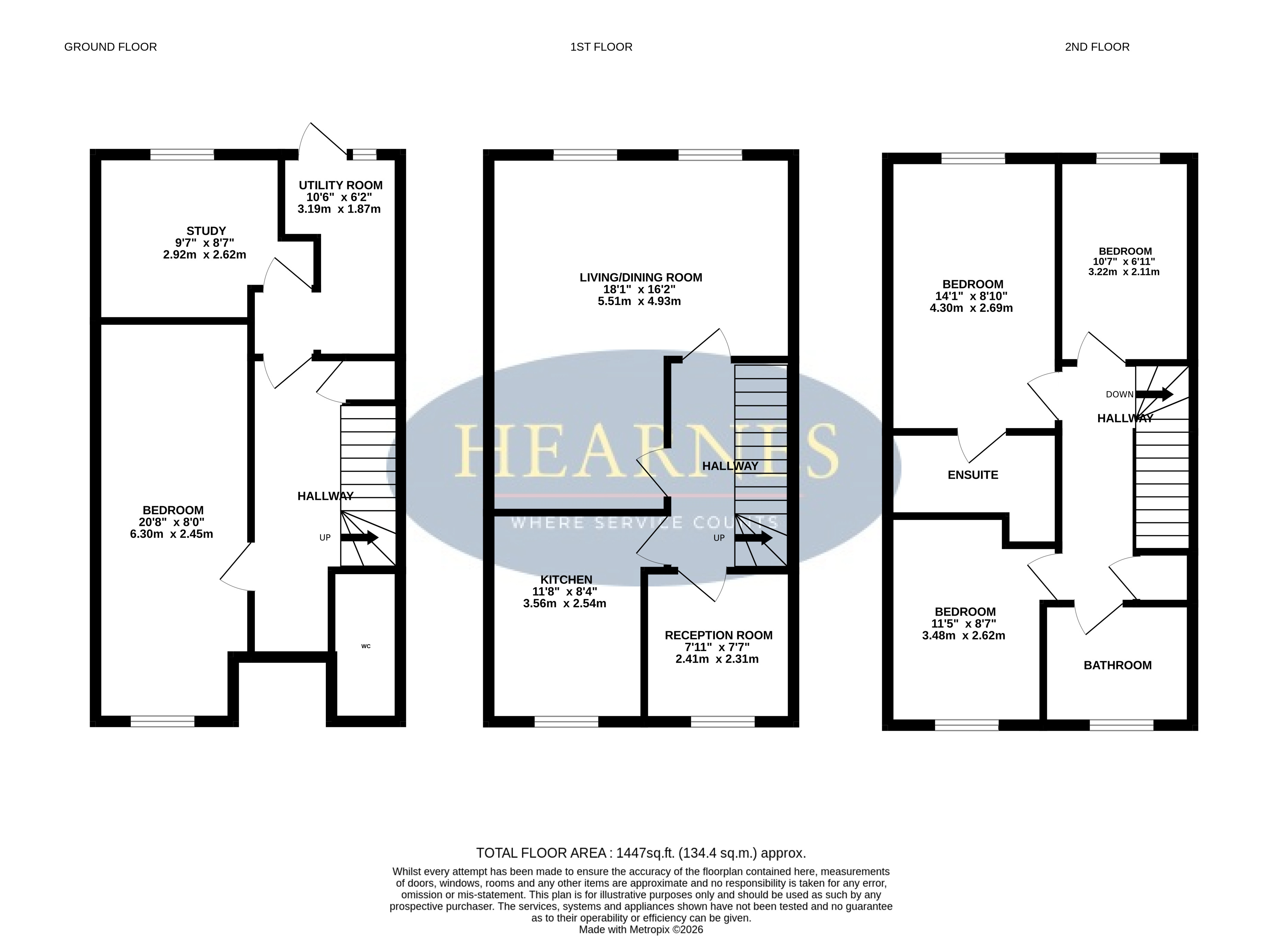 AGENTS NOTE: The heating system, mains and appliances have not been tested by Hearnes Estate Agents. Any areas, measurements or distances are approximate. The text, photographs and plans are for guidance only and are not necessarily comprehensive. Whilst reasonable endeavours have been made to ensure that the information given in our sales particulars are as accurate as possible, this information has been provided to us by the seller and is not guaranteed. Any intending buyer should not rely upon the information we have supplied and should satisfy themselves by inspection, searches, enquiries, and survey as to the correctness of each statement before making a financial or legal commitment. We have not checked the legal documentation to verify the legal status, including the lease term and ground rent and escalation of ground rent of the property (where applicable). A buyer must not rely upon the information provided until it has been verified by their own solicitors.