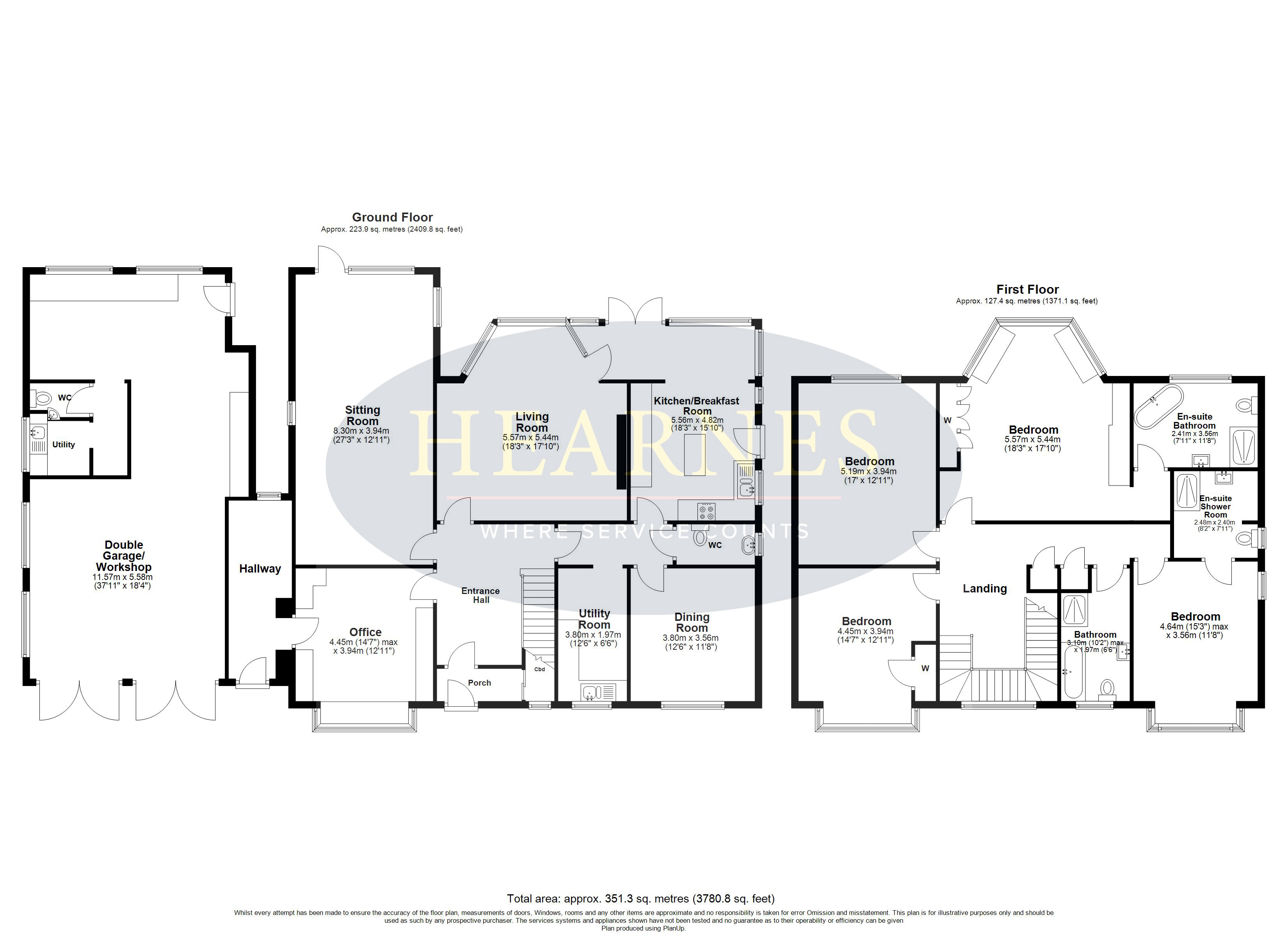 A paved driveway with double electric gates leads to the property, which is approached via a covered porch opening into a welcoming entrance hall, providing access to the principal ground floor rooms and stairs rising to the first floor. To the front of the house is a generous office, ideal for home working, which leads into an impressive double garage and workshop area. To the rear sits a spacious sitting room with excellent natural light and direct access to the garden, offering lovely views. The main living room, featuring a fireplace and bay window, is centrally positioned and connects seamlessly to the modern kitchen/breakfast room, which spans the rear of the property and benefits from double doors opening onto the garden and a side door. The kitchen, complete with island, provides ample space for both everyday dining and entertaining. Adjacent is a formal dining room, ideal for more structured meals. A utility room and ground floor WC are conveniently positioned off the hallway, offering practical storage and laundry facilities.
