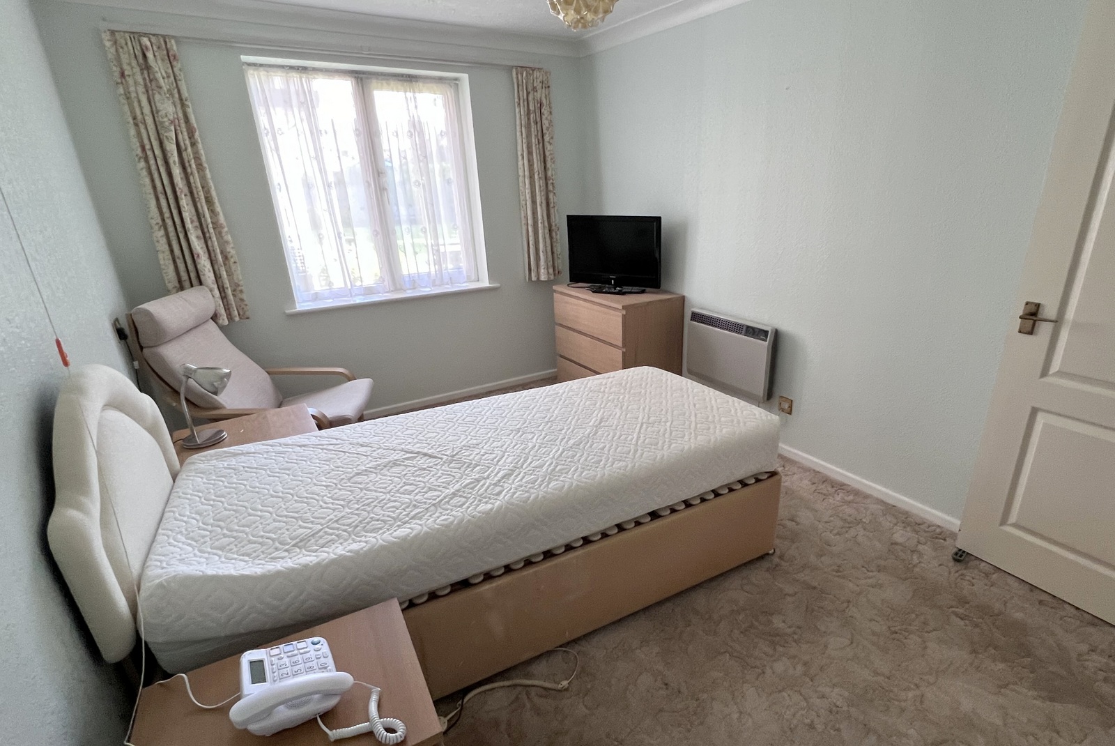 • Bedroom double glazed window overlooking the communal grounds, built-in cupboard