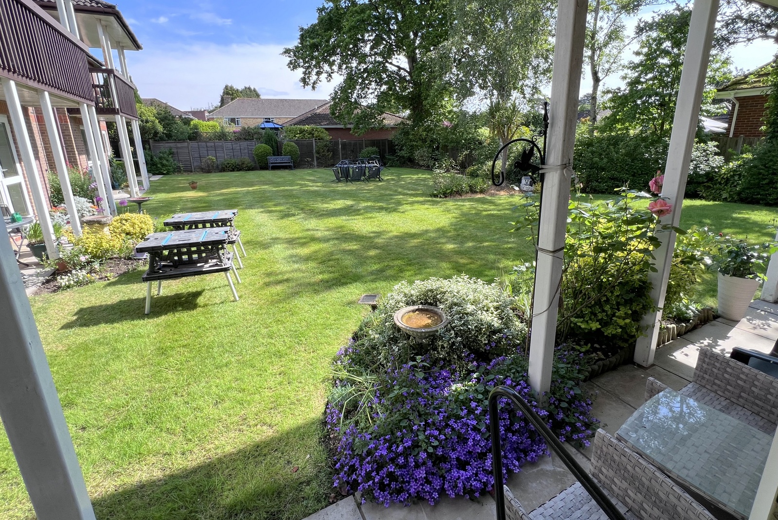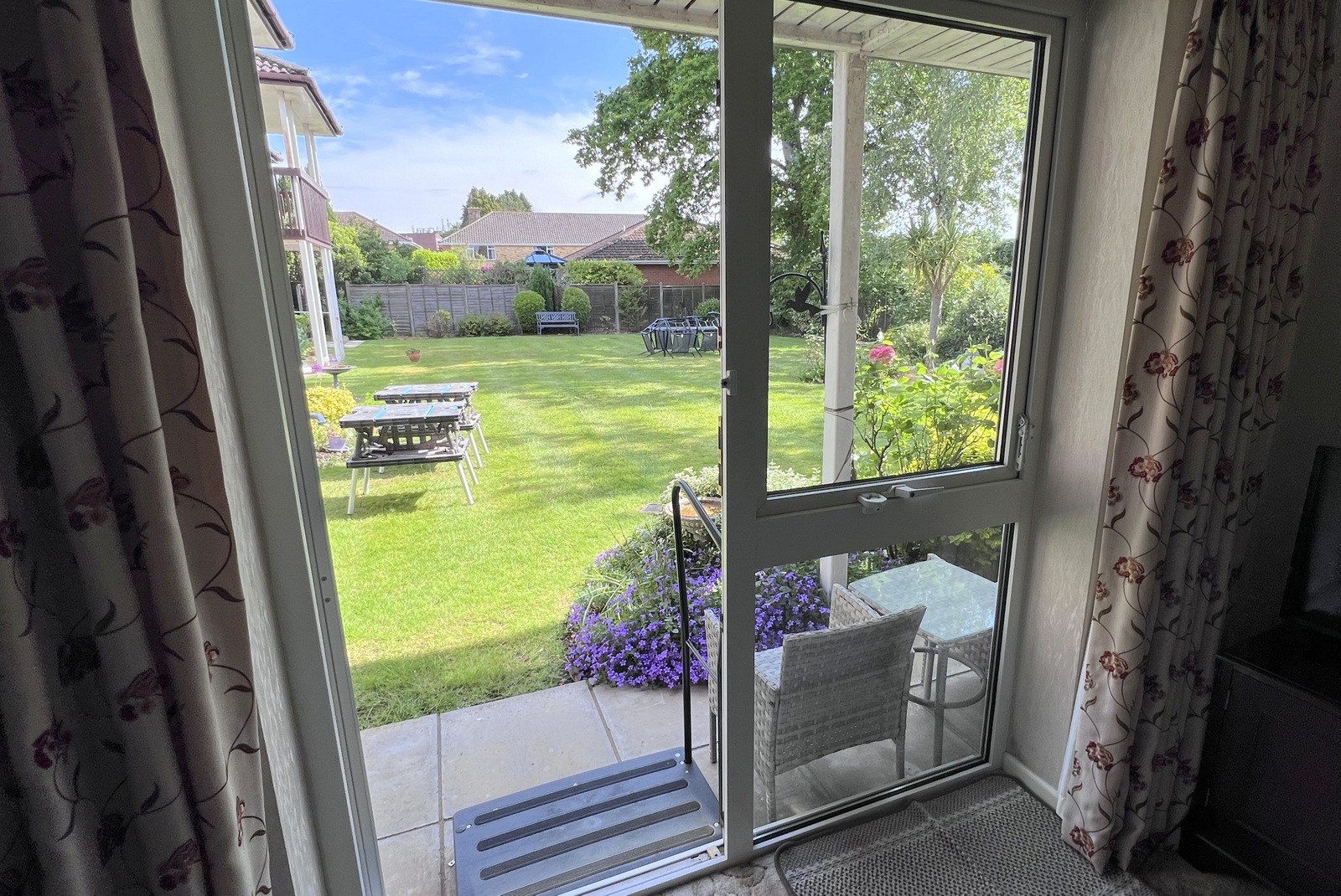 The apartment is situated at the rear of the block providing views across a large expanse of communal lawn from the private patio, whilst the well presented accommodation comprises: