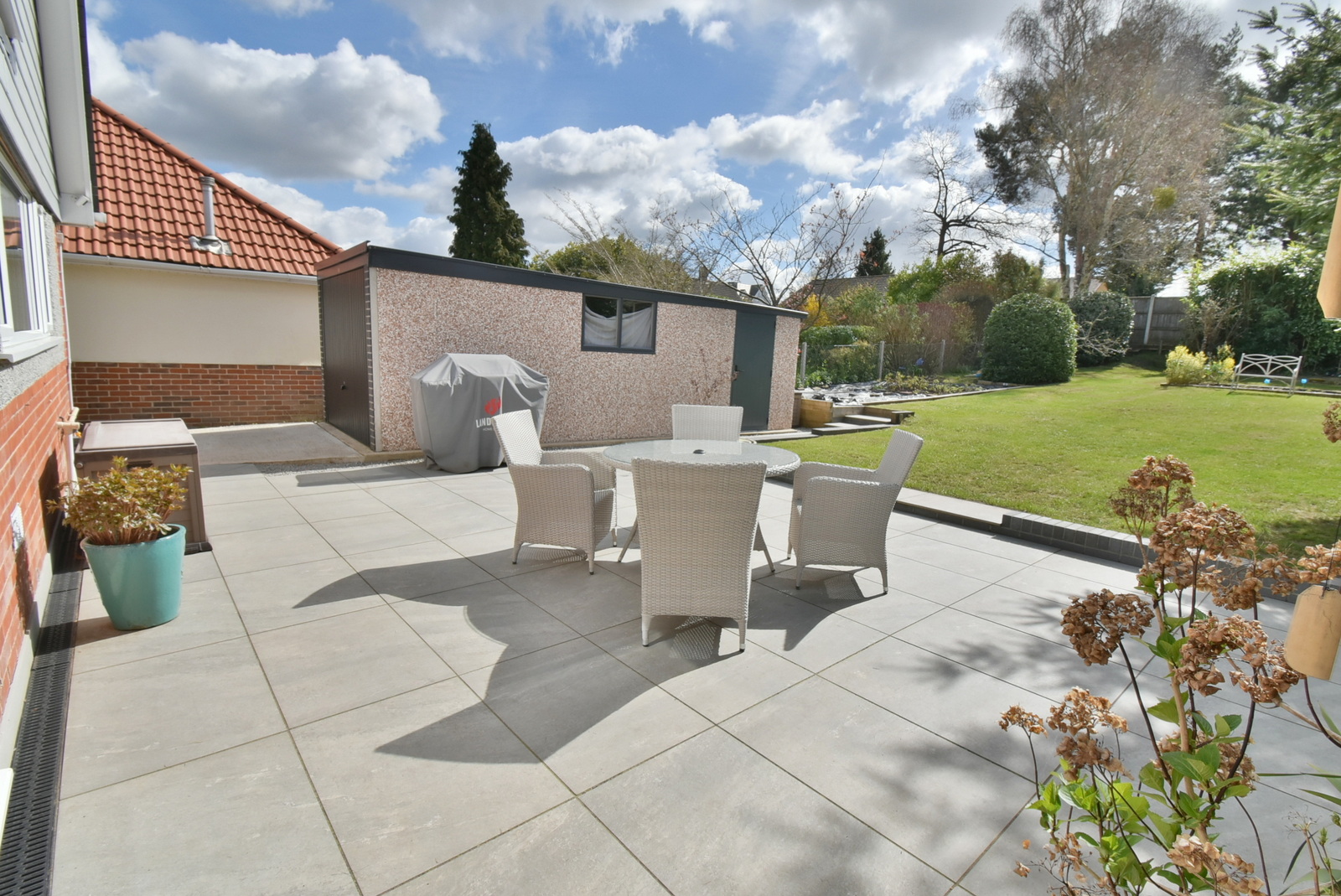 • Immediately to the rear of the house is a recently installed large grey porcelain patio ideal for outdoor dining and entertaining, with ample space for a hot tub and barbeque