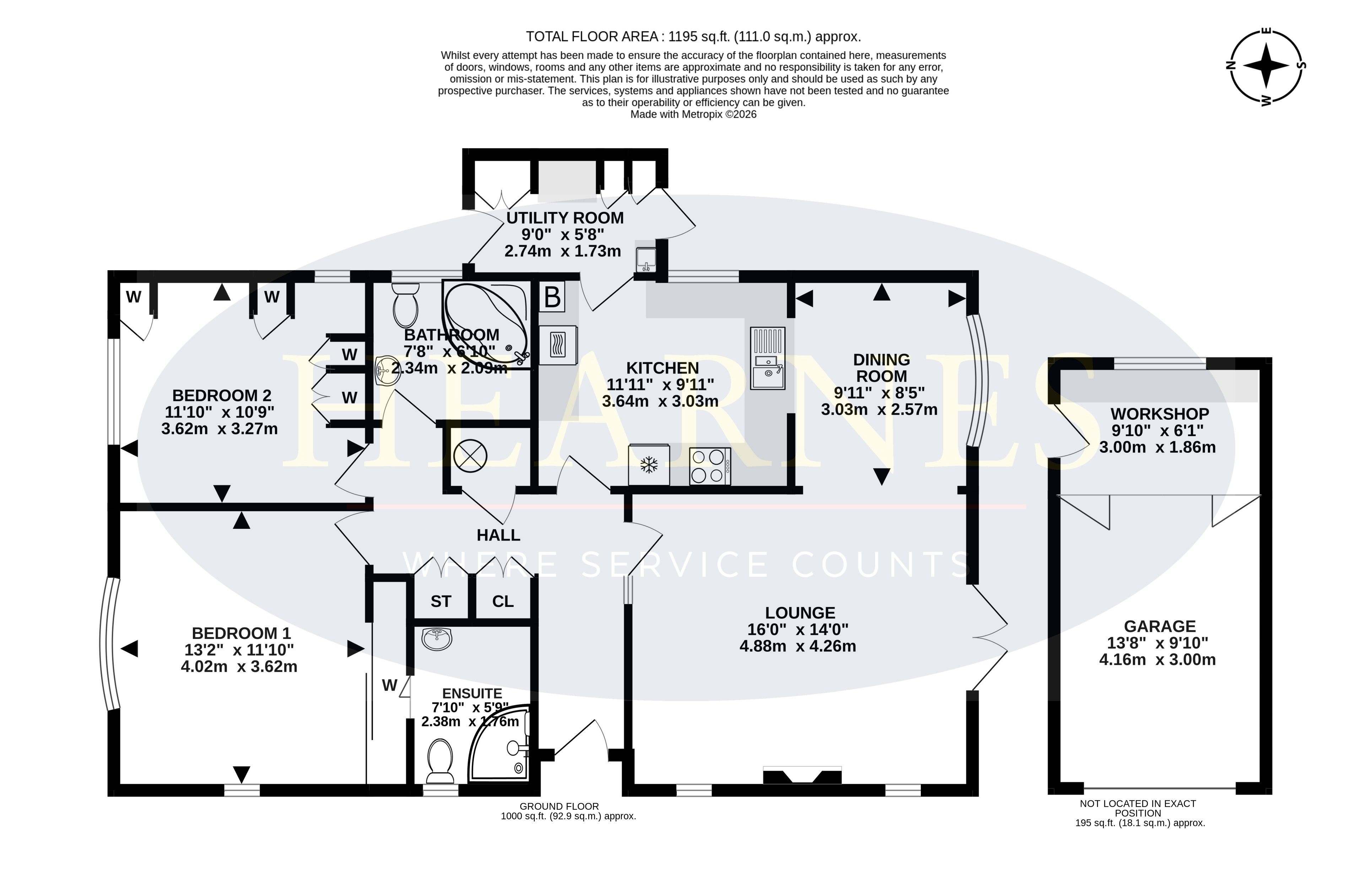 AGENTS NOTES: The heating system, mains and appliances have not been tested by Hearnes Estate Agents. Any areas, measurements or distances are approximate. The text, photographs and plans are for guidance only and are not necessarily comprehensive. Whilst reasonable endeavours have been made to ensure that the information in our sales particulars are as accurate as possible, this information has been provided for us by the seller and is not guaranteed. Any intending buyer should not rely on the information we have supplied and should satisfy themselves by inspection, searches, enquiries and survey as to the correctness of each statement before making a financial or legal commitment. We have not checked the legal documentation to verify the legal status, including the leased term and ground rent and escalation of ground rent of the property (where applicable). A buyer must not rely upon the information provided until it has been verified by their own solicitors.