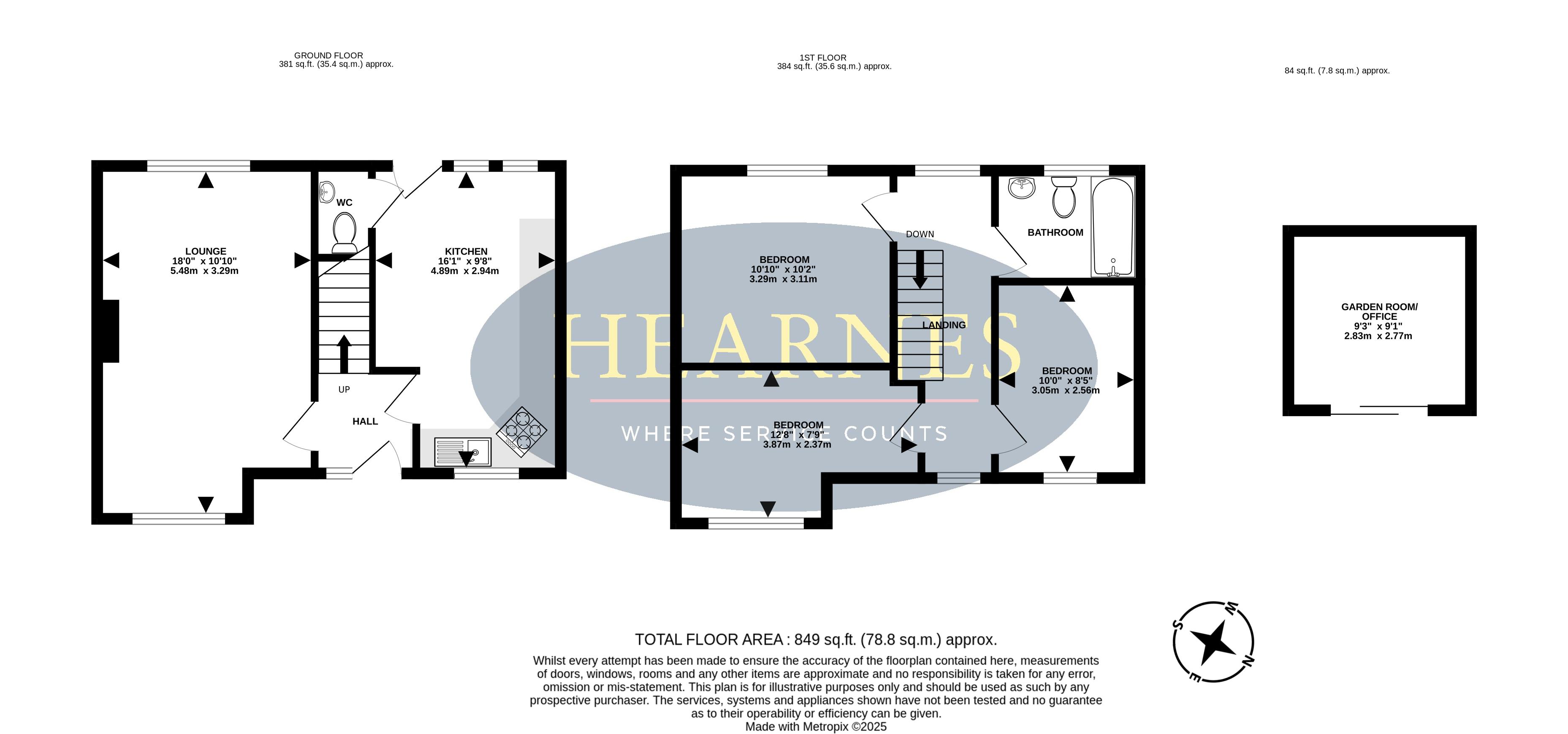 • South facing garden measuring approximately 60’ and is a sun lover’s dream. Outside Catio for cats and brick storage room, patio and lawn
