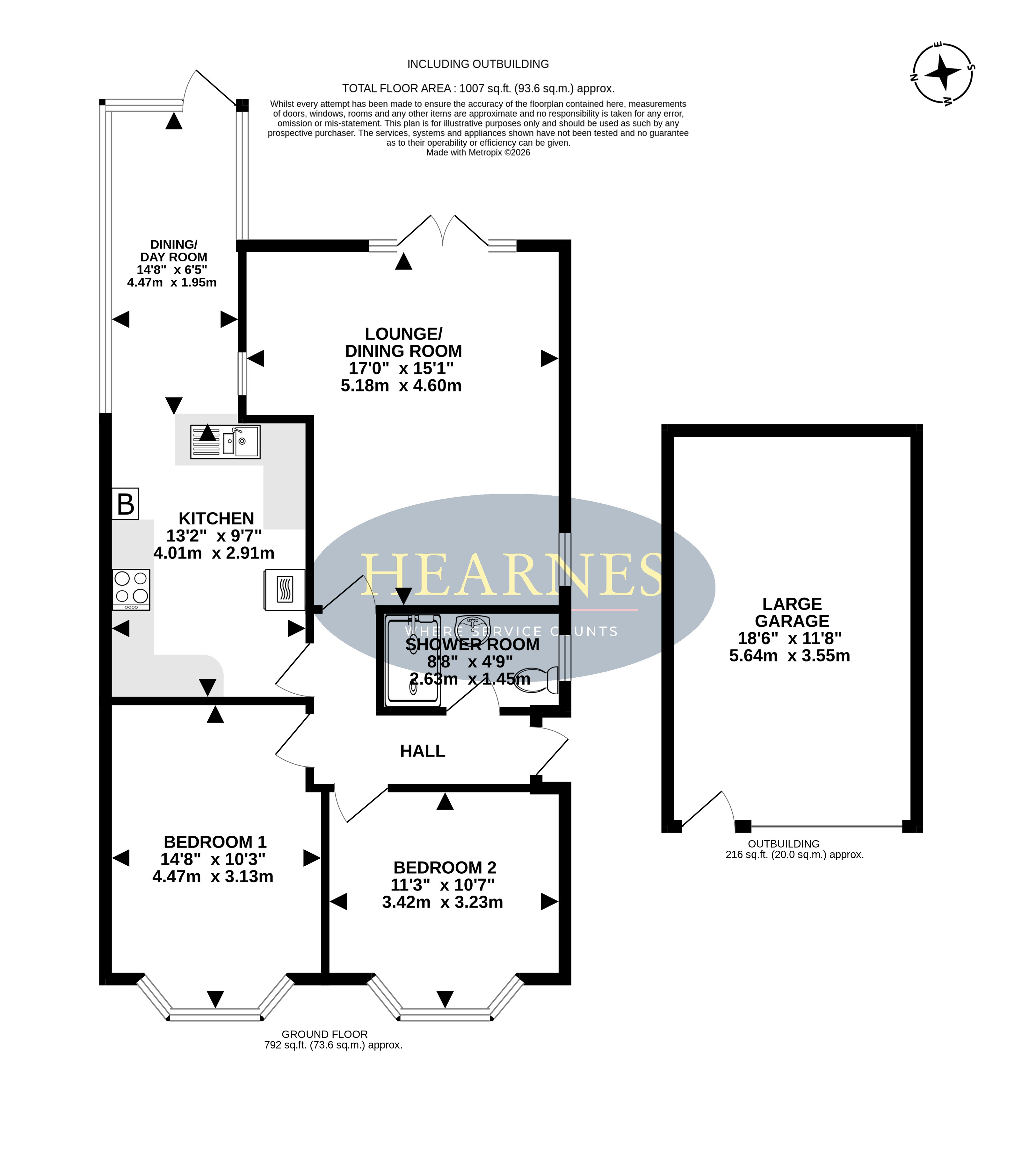 • Large, detached garage with up and over door and further access door