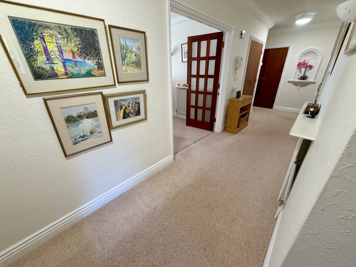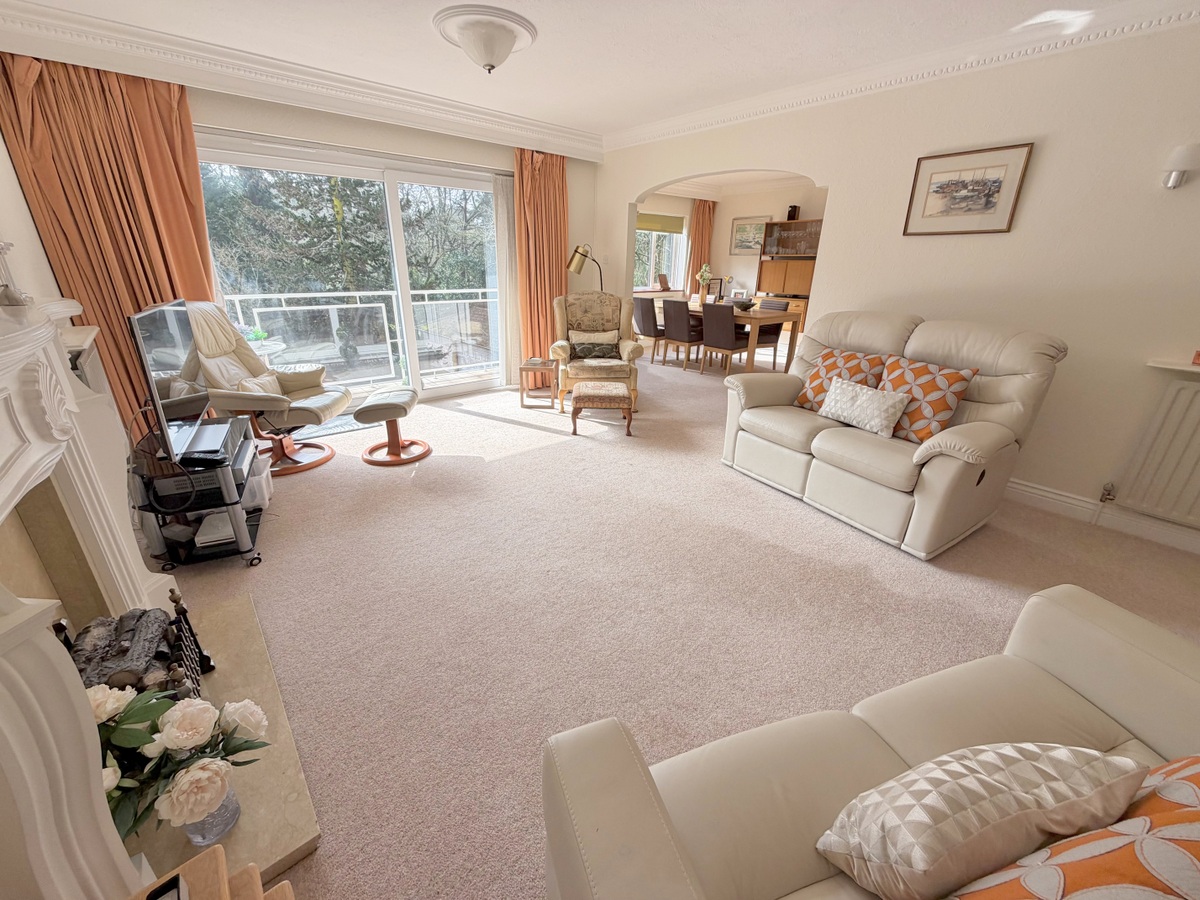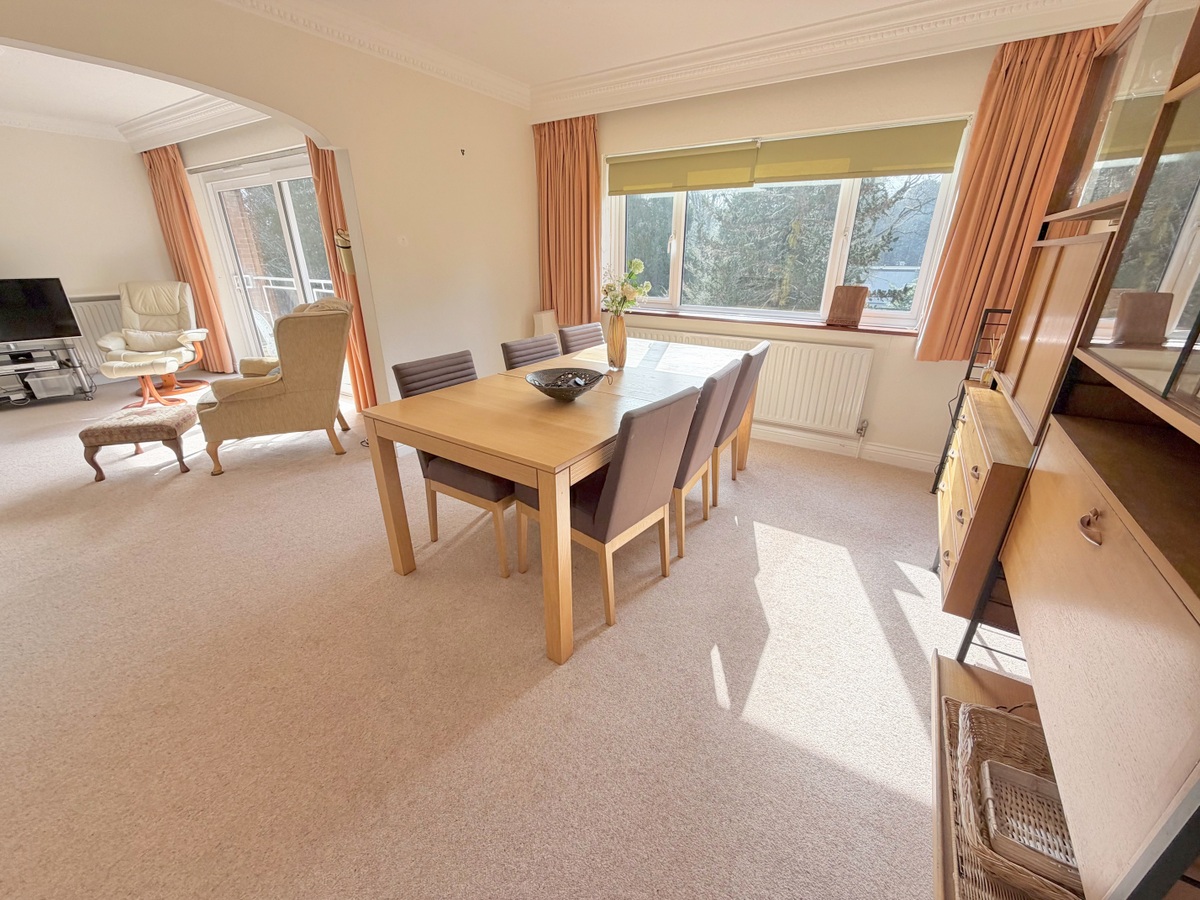 An extremely spacious 3 double bedroom, 2 reception room second floor apartment boasting over 1500 sq. ft of living accommodation and set in a development of just 7 others in a desirable Branksome Park location. The property is sold with no forward chain and offers huge potential for personalisation and modernisation. The property is neat and clean and has been modernised in parts enjoying a southerly aspect and is situated on the south/west side of the development. The apartment benefits from a balcony with views over the garden, 2 shower rooms, cloakroom, kitchen/breakfast room, with a separate utility area, excellent storage cupboards and a double garage. The property enjoys treetop views above the well-tended communal gardens below, has visitor parking to the front, entry phone system and a passenger lift servicing all floors. Balcombe Court was built approximately 40 years ago and consists of just 8 flats set over 4 floors.