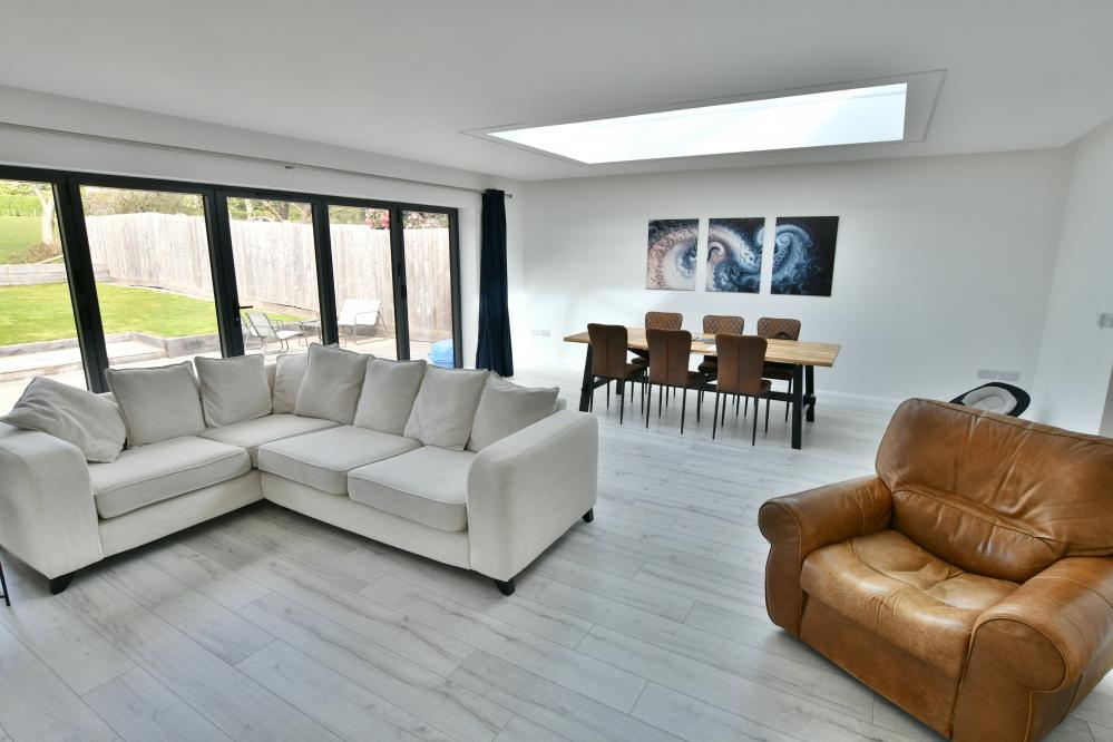 A contemporary, deceptively spacious detached chalet style home offering four bedrooms as well as a stunning open plan kitchen/sitting/dining room, superb bathroom and additional studio/home office with an en suite shower room and ample off road parking situated in a semi rural location.