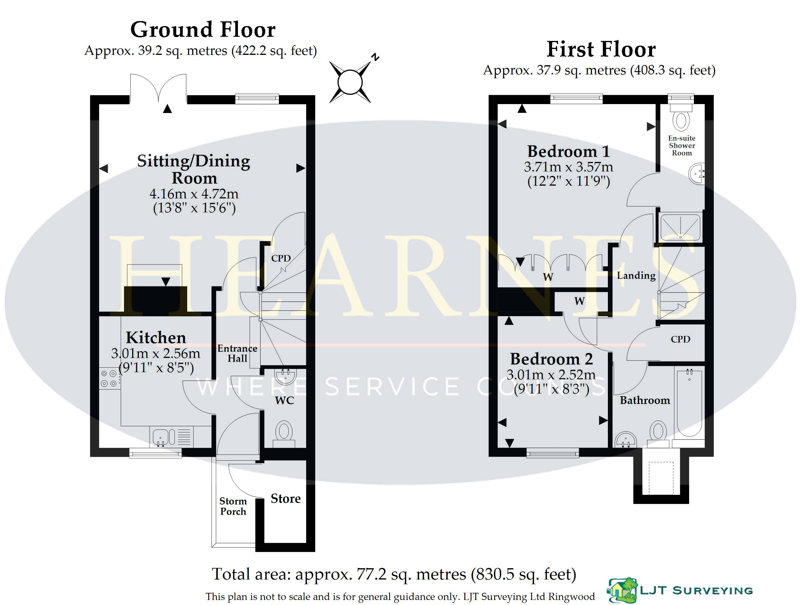 A well proportioned two bedroom, two bathroom spacious end of terrace home with a generous size sitting/dining room, kitchen/breakfast room, separate cloakroom and two parking spaces set in a beautiful semi-rural location with a private garden. • Entrance hall with tiled floor and under stairs storage • Kitchen with a range of pine units and complementary worktops, built in cooker and gas hob, space for washing machine, Integrated fridge freezer and tiled floor • Sitting/dining room with feature fireplace, wooden floors, under stairs storage and double glazed French doors opening onto the patio • Separate cloakroom with tiled floor, pedestal wash hand basin and WC • The landing has an airing cupboard and loft access • Two double bedrooms both with fitted wardrobes, the main bedroom has views across the surrounding countryside and an en suite shower room with separate shower cubicle, pedestal wash hand basin and WC • Family bathroom with bath and shower fitment, pedestal wash hand basin and WC • Enclosed south facing rear garden with patio and a range of shrubs and plants • Set in a courtyard development of similar properties with two allocated parking space, one adjacent to the rear fence and one opposite the rear fence • Maintenance: We understand from the vendor there is a maintenance charge of approximately £600 per annum The property is situated close to the A31 approximately five miles from Wimborne and seven miles from Poole. The popular village of Sturminster Marshall is close by and benefits from a variety of amenities which include a village shop/post office, pharmacy, public houses, church, well regarded First school and a nine hole golf course. COUNCIL TAX BAND: E EPC RATING: DAGENTS NOTES: The heating system, mains and appliances have not been tested by Hearnes Estate Agents. Any areas, measurements or distances are approximate. The text, photographs and plans are for guidance only and are not necessarily comprehensive. Whilst reasonable endeavours have been made to ensure that the information in our sales particulars are as accurate as possible, this information has been provided for us by the seller and is not guaranteed. Any intending buyer should not rely on the information we have supplied and should satisfy themselves by inspection, searches, enquiries and survey as to the correctness of each statement before making a financial or legal commitment. We have not checked the legal documentation to verify the legal status, including the leased term and ground rent and escalation of ground rent of the property (where applicable). A buyer must not rely upon the information provided until it has been verified by their own solicitors.