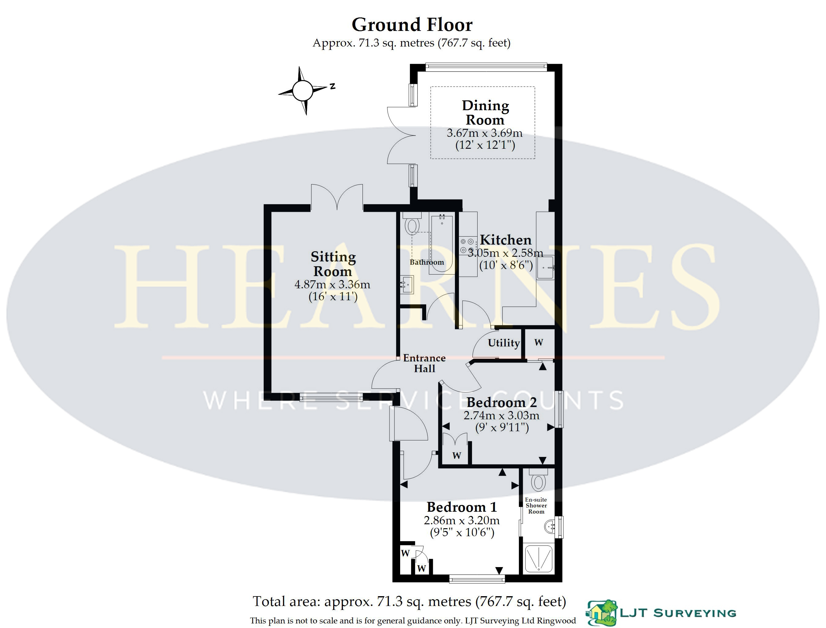 An exceptional detached bungalow beautifully finished throughout featuring a stunning open plan kitchen/dining room with glass vaulted ceiling creating a light and spacious heart to the home. The property offers two generous size bedrooms including a luxury en suite shower room along with a stylish family bathroom. Externally there is an ‘in and out’ drive with ample off-road parking and an immaculate low maintenance garden ideal for al fresco dining perfectly positioned in a sought after location. • Entrance hallway with stylish Amtico flooring through into laundry room, family bathroom and kitchen/diner, space for cloaks, access to loft with pulldown ladder which is boarded and houses the boiler • Superb sitting room enjoying a dual aspect with French doors with fitted shutters and night and day electric blinds to the front • Stunning kitchen/dining room with range of base and eye level units with butler sink and complementary worktops, inset induction hob with extractor fan over, electric oven and separate microwave oven, integrated dishwasher and fridge freezer and wine fridge. Space for table and chairs with feature glass vaulted ceiling with fitted electric blind, rear aspect window and French doors with fitted shutters • Laundry room with light and vented, space for washing machine and tumble dryer • Two generous size bedrooms. Main bedroom with fitted bedroom furniture and electric blind, pocket door to luxury en suite shower room with rainfall shower head, wash hand basin, WC and ladder style heated towel rail • Two double bedrooms with fitted wardrobes and electric day & night blinds • Stylish bathroom with white three piece suite and electric Velux window for light and ventilation • Double glazing and gas heating and security alarm • Outside: Two five bar gates give access to shingle driveway for ample off road parking, raised flower beds. Access to rear garden can be gained from both sides of the property. Rear garden with terrace patio ideal for al fresco dining and then laid to shingle for low maintenance with large timber shed with electrics and alarm and outside sensor lighting. The garden is enclosed by panel fencing The location of the property combines the advantage of town with easy access to open countryside and the river Stour nearby. Wimborne town centre is approximately two miles where there are a number of shops, restaurants, public houses and the popular Tivoli theatre. COUNCIL TAX BAND: D EPC RATING: TBCAGENTS NOTES: AGENTS NOTES: The heating system, mains and appliances have not been tested by Hearnes Estate Agents. Any areas, measurements or distances are approximate. The text, photographs and plans are for guidance only and are not necessarily comprehensive. Whilst reasonable endeavours have been made to ensure that the information in our sales particulars are as accurate as possible, this information has been provided for us by the seller and is not guaranteed. Any intending buyer should not rely on the information we have supplied and should satisfy themselves by inspection, searches, enquiries and survey as to the correctness of each statement before making a financial or legal commitment. We have not checked the legal documentation to verify the legal status, including the leased term and ground rent and escalation of ground rent of the property (where applicable). A buyer must not rely upon the information provided until it has been verified by their own solicitors.
