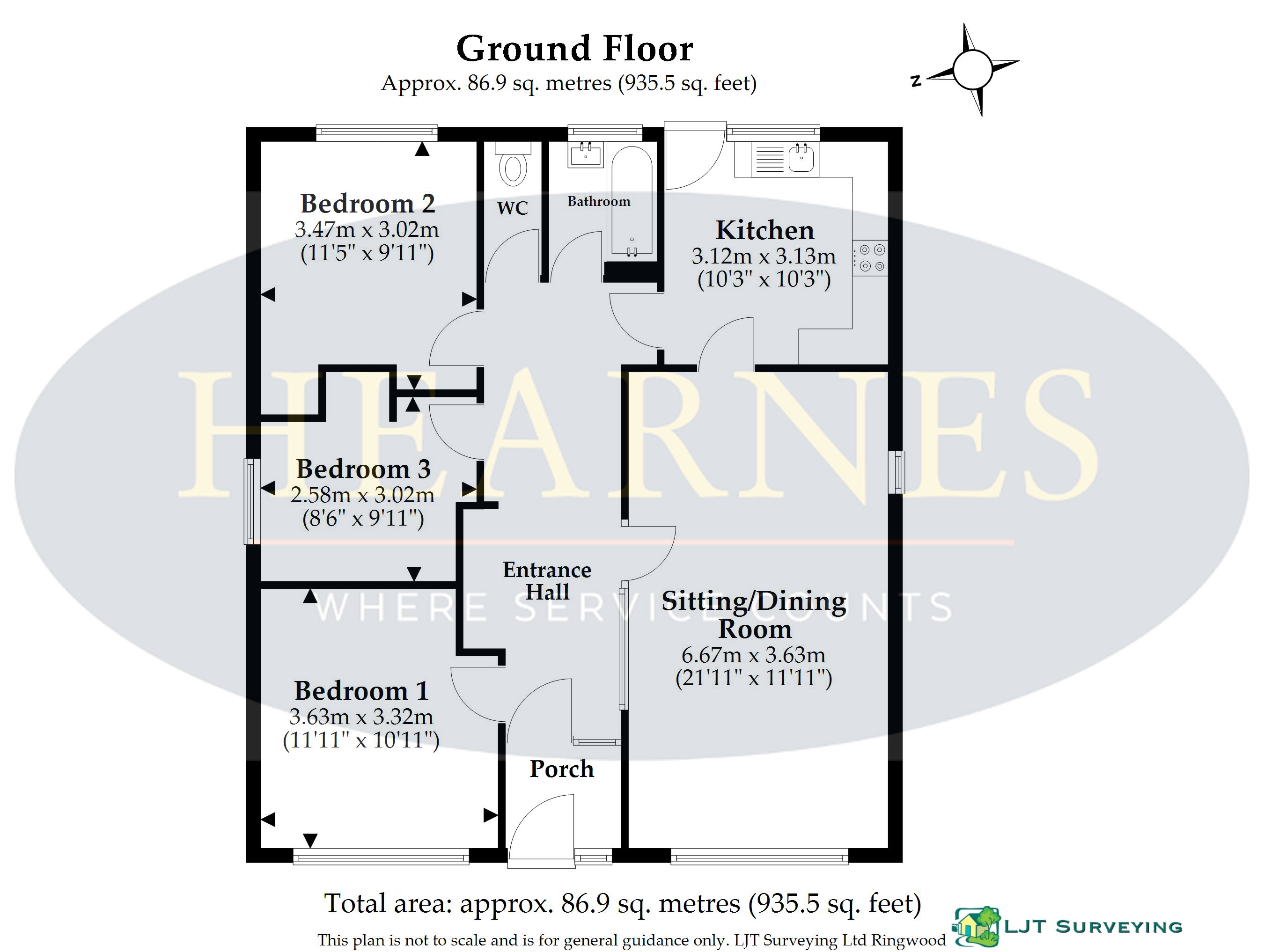 A well proportioned three double bedroom detached bungalow set on a generous size plot with garage and off road parking. The property has been recently refurbished throughout including a new kitchen, bathroom, cloakroom, new wiring, plumbing, flooring and redecoration. NO FORWARD CHAIN. • Entrance porch ideal for coats and shoes • Large reception hall with storage cupboards and loft access • Modern kitchen with range of high gloss white units and complementary worktops, a built in oven, ceramic hob with extractor hood over, space for washing machine and fridge freezer • Good size sitting room with dual aspect • Three double bedrooms, all with space for wardrobes • Modern bathroom with bath and shower over, wash hand basin set in a vanity unit, heated towel rail and wall mounted mirror cupboard with lights • Cloakroom with WC • Rear garden with lawn, a small pond and a range of mature shrubs and trees • Garage and off road parking for several cars This sought after area of Colehill offers excellent schooling and local shops, parish church, library and hairdresser. The thriving town of Wimborne is approximately two and a half miles away offering more extensive shopping and leisure facilities as well as numerous restaurants and public houses. COUNCIL TAX BAND: D EPC RATING: CAGENTS NOTES: AGENTS NOTES: The heating system, mains and appliances have not been tested by Hearnes Estate Agents. Any areas, measurements or distances are approximate. The text, photographs and plans are for guidance only and are not necessarily comprehensive. Whilst reasonable endeavours have been made to ensure that the information in our sales particulars are as accurate as possible, this information has been provided for us by the seller and is not guaranteed. Any intending buyer should not rely on the information we have supplied and should satisfy themselves by inspection, searches, enquiries and survey as to the correctness of each statement before making a financial or legal commitment. We have not checked the legal documentation to verify the legal status, including the leased term and ground rent and escalation of ground rent of the property (where applicable). A buyer must not rely upon the information provided until it has been verified by their own solicitors.