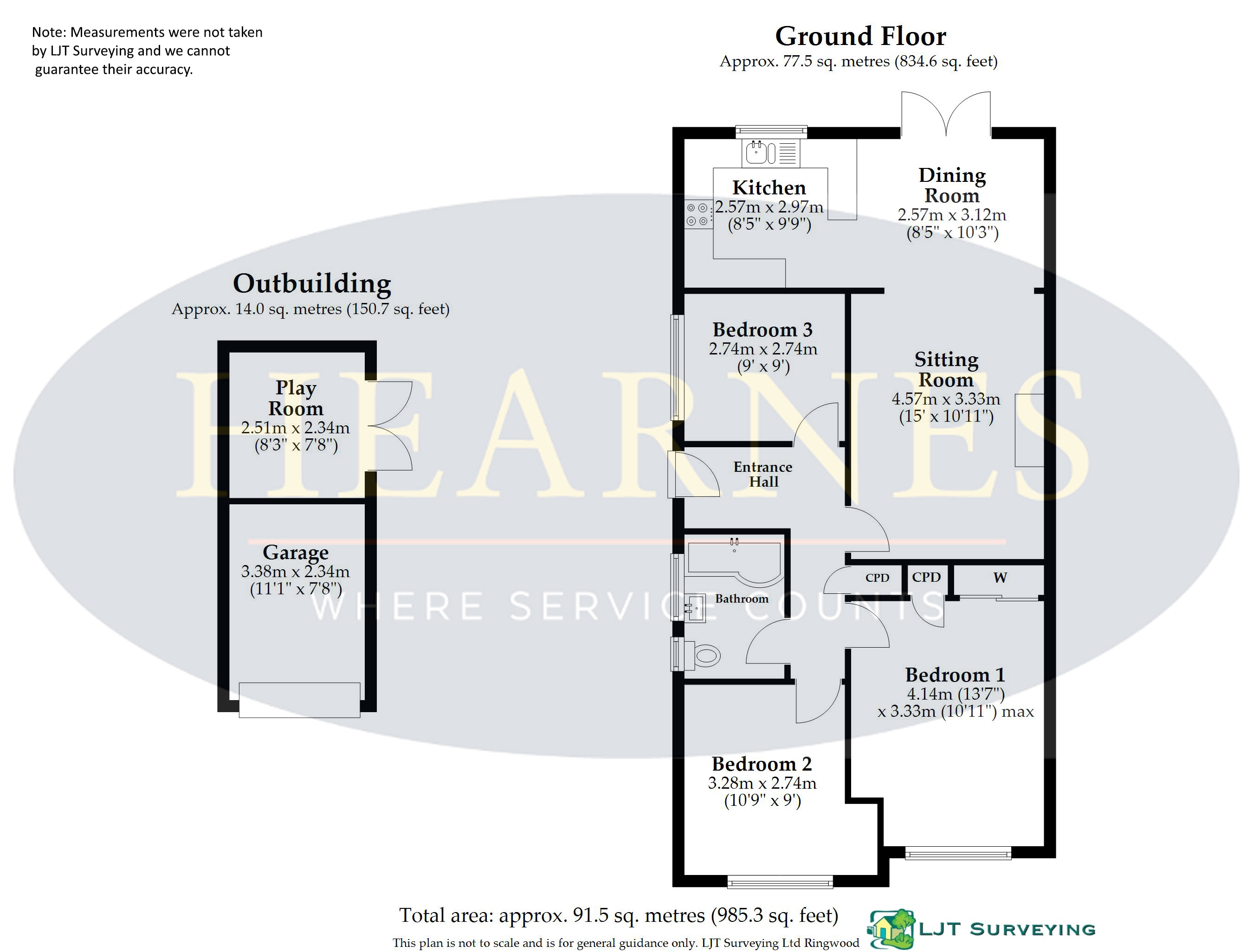 An immaculately presented three-bedroom semi-detached bungalow situated in a popular residential location. The property offers an inviting open plan sitting/kitchen/dining area, perfect for modern living. Externally there is ample off-road parking leading to a storage garage/studio and a low maintenance rear garden, ideal for relaxing or entertaining. • Composite front door leading to ‘L’ shaped entrance hallway with storage cupboard • Superb open plan sitting room with wood burner and square arch to dining area with French door to garden. Modern kitchen with range of base and eye level units and pan drawers with complementary worktops, inset gas hob with extractor fan over and double electric oven below, integrated dishwasher, space for American style fridge freezer and washing machine and rear aspect window • Three good size bedrooms: main bedroom with mirror fronted wardrobes • Stylish fully tiled bathroom with ‘P’ shaped bath with shower over and shower screen, floating vanity unit with wash hand basin and WC, ladder style heated towel rail and heated mirror • Double glazing and gas heating • Outside: brick pavia driveway gives off-road parking for a number of cars, leading to storage garage, front garage laid to shingle with shrubs and trees, inset with low level hedging. The rear garden has decking area with steps to main garden, laid to artificial grass for ease of maintenance and further patio area. The rear of the garage has been converted to a studio room and the garden has been enclosed by panel fencing This sought after area of Colehill offers excellent schooling and local shops, parish church, library and hairdresser. The thriving town of Wimborne is approximately 2 miles away offering more extensive shopping and leisure facilities as well as numerous restaurants and public houses. EPC RATING: C COUNCIL TAX BAND: CAGENTS NOTES: The heating system, mains and appliances have not been tested by Hearnes Estate Agents. Any areas, measurements or distances are approximate. The text, photographs and plans are for guidance only and are not necessarily comprehensive. Whilst reasonable endeavours have been made to ensure that the information in our sales particulars are as accurate as possible, this information has been provided for us by the seller and is not guaranteed. Any intending buyer should not rely on the information we have supplied and should satisfy themselves by inspection, searches, enquiries and survey as to the correctness of each statement before making a financial or legal commitment. We have not checked the legal documentation to verify the legal status, including the leased term and ground rent and escalation of ground rent of the property (where applicable). A buyer must not rely upon the information provided until it has been verified by their own solicitors.