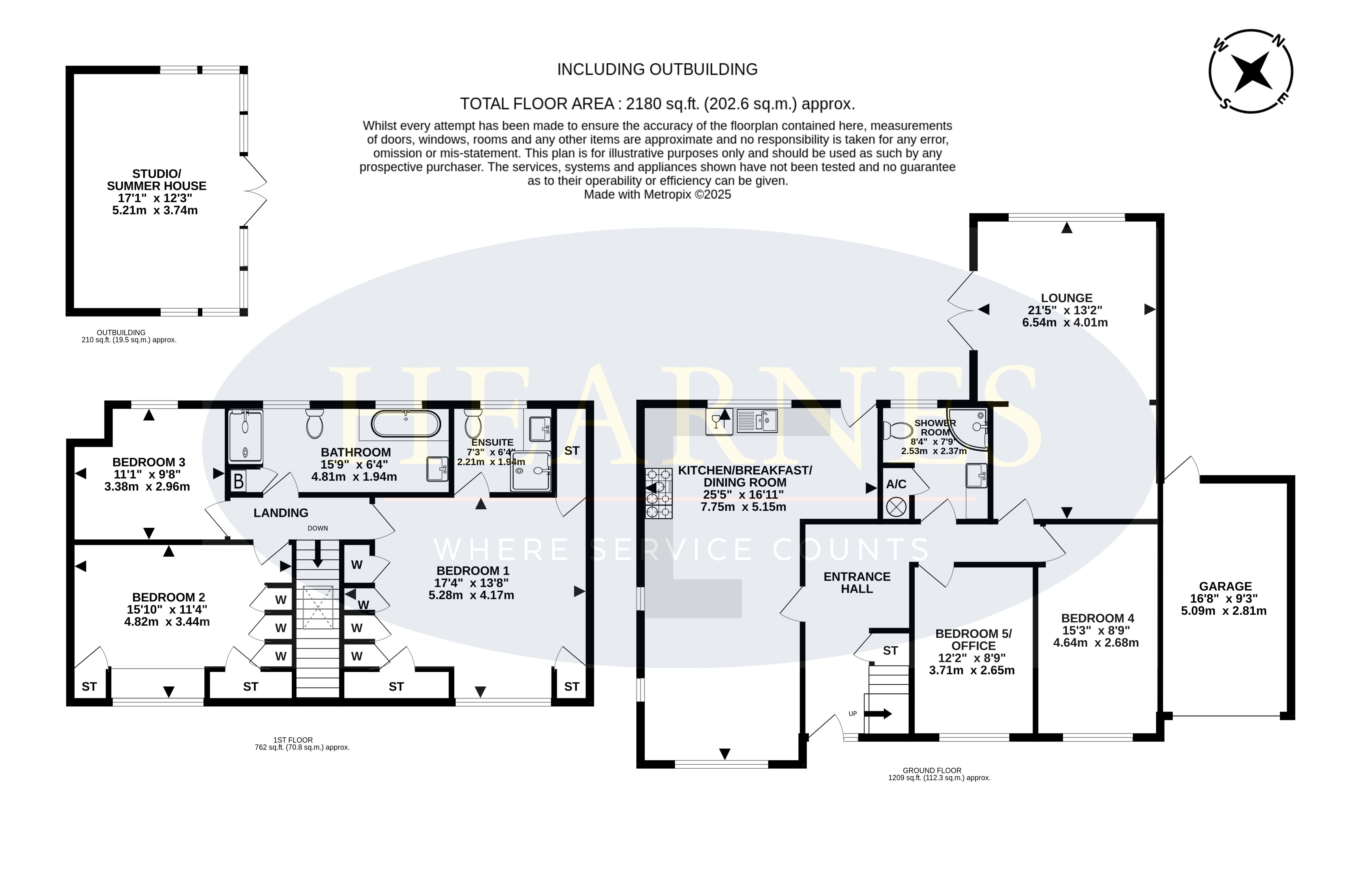 An attractive and well presented four/five bedroom detached chalet style home set on a generous plot offering versatile and spacious accommodation in a quiet, sought after location. • Large ‘L’ shaped entrance hallway with understairs storage cupboard • Ground floor shower room with corner shower cubicle, vanity unit with wash hand basin and WC, airing cupboard • Spacious sitting room enjoying a dual aspect and French doors leading onto patio and garden • Two ground floor bedrooms/reception rooms • Superb kitchen/dining room with range of base and eye level units and pan drawer with complementary worktops, ‘Cookmaster’ seven ring range cooker with extractor fan over, integrated dishwasher, space for American style fridge freezer and washing machine. Space for family dining table and chairs, dual aspect window and door to garden • Three first floor bedrooms. Main bedroom with built in wardrobes, eaves storage space and en suite shower room • Bedroom two with built in wardrobe and chest of drawers with window seatbedroom three enjoying a rear aspect overlooking the garden • Bedroom three enjoying a rear aspect overlooking the garden • Generous size family bathroom with bath, double shower cubicle with rainfall head, wash hand basin, WC ladder style heated towel rail and boiler cupboard • Double glazing and gas heating • Block paved driveway and turning area provides ample off road parking leading to garage with up and over doors • Front garden is laid to lawn with hedgerow borders. The rear garden has a terrace patio area leading onto tiered expansive lawns with an abundance of flower/shrub/tree borders. Further decking area with summerhouse and two sheds enclosed by panel fencing and hedgerow This sought after area of Colehill offers excellent schooling and local shops, parish church, library and hairdresser. The thriving town of Wimborne is approximately three miles away offering more extensive shopping and leisure facilities as well as numerous restaurants and public houses. COUNCIL TAX BAND: E EPC RATING: CAGENTS NOTES: AGENTS NOTES: The heating system, mains and appliances have not been tested by Hearnes Estate Agents. Any areas, measurements or distances are approximate. The text, photographs and plans are for guidance only and are not necessarily comprehensive. Whilst reasonable endeavours have been made to ensure that the information in our sales particulars are as accurate as possible, this information has been provided for us by the seller and is not guaranteed. Any intending buyer should not rely on the information we have supplied and should satisfy themselves by inspection, searches, enquiries and survey as to the correctness of each statement before making a financial or legal commitment. We have not checked the legal documentation to verify the legal status, including the leased term and ground rent and escalation of ground rent of the property (where applicable). A buyer must not rely upon the information provided until it has been verified by their own solicitors.