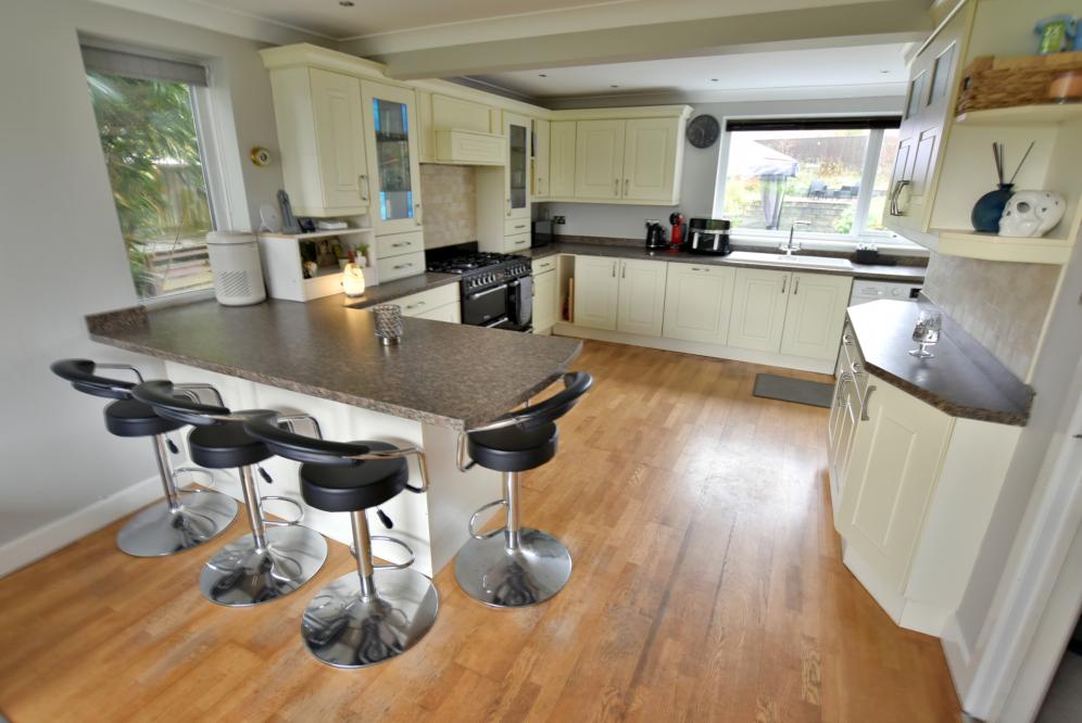 An attractive and well presented four/five bedroom detached chalet style home set on a generous plot offering versatile and spacious accommodation in a quiet, sought after location.