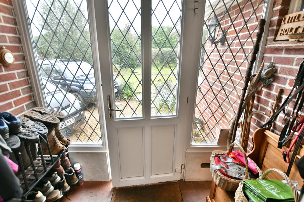 A well-proportioned, semi-rural three double bedroom, two bathroom and two reception room detached bungalow set on a generous size plot opposite Holt Heath with ample off-road parking