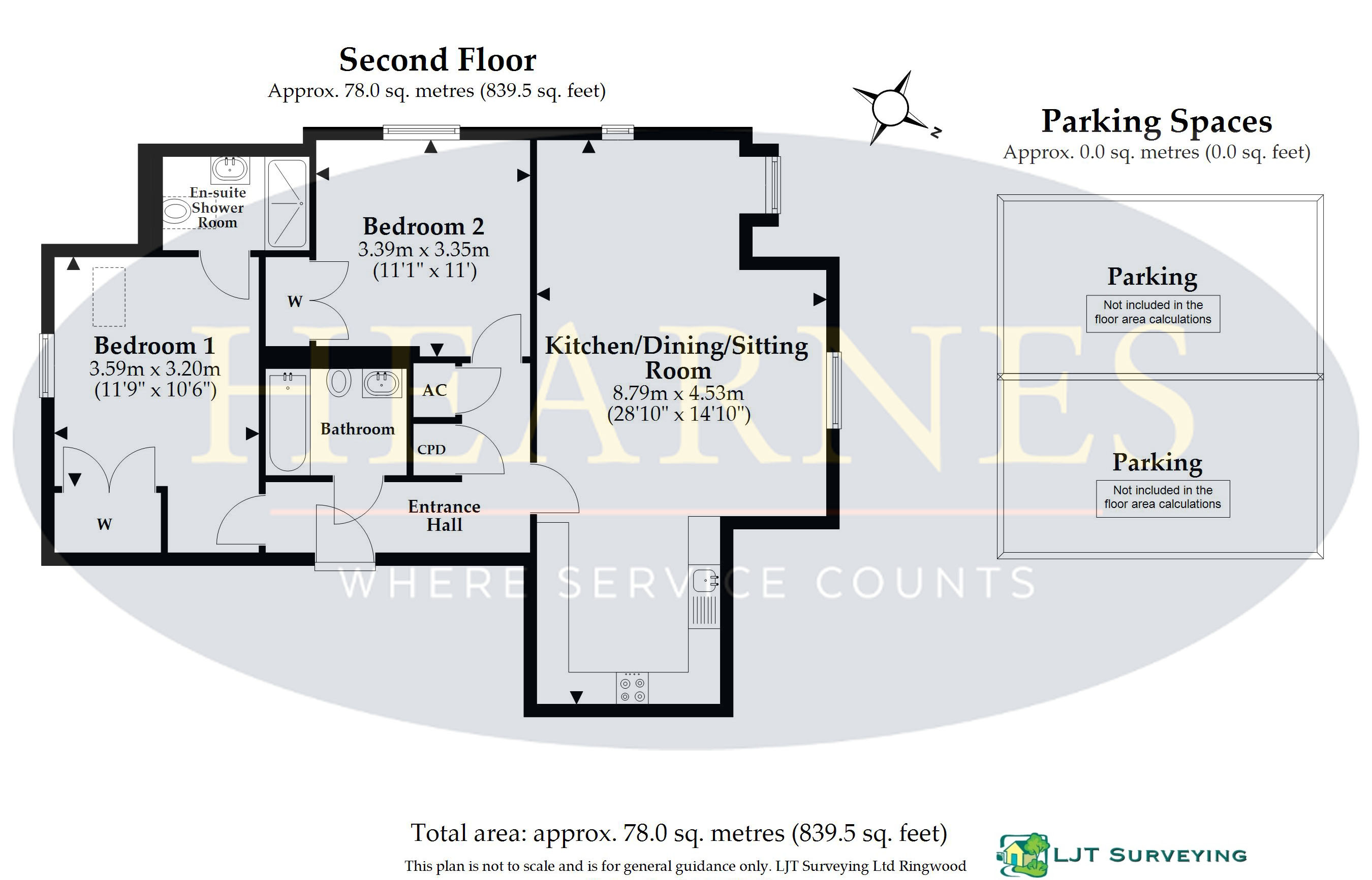 A well presented and spacious second floor purpose-built apartment with a lift, offering two bedrooms, stunning open plan kitchen/living/dining room, luxury en suite bathroom and two allocated parking spaces, located within walking distance of Wimborne town centre. • Wyatt Homes riverside development completed in 2020 with remaining builder’s warranty • Spacious communal entrance hallway with secure video entry phone system with stairs and lift to second floor landing • Entrance hallway with airing cupboard housing boiler and further good size storage cupboard • Stunning open plan kitchen/sitting/dining room with view of front elevation with river views. The kitchen has range of soft close base and eye level units and pan drawers with stone worktops, inset induction hob with extractor fan over, adjacent oven and microwave/grill, integrated dishwasher, washing machine and fridge freezer and space for table and chairs and sofas • Superb family bathroom including bath with shower over, floating wash hand basin and WC, fully tiled walls and flooring • Two generous size bedrooms with built in wardrobes. Main bedroom with luxury en suite shower room and views over rear of apartments and allotments • Outside: the apartment has two allocated parking spaces, one EV charging point and one visitor space with additional bike storage. The property also benefits from solar panels to heat and light communal areas • Maintenance fees: We understand from the vendor this is £1,900 for 2026 • Ground rent & lease: We understand from the vendor there is a peppercorn ground rent and a 999 year lease as from 2020 COUNCIL TAX BAND: D EPC RATING: BAGENTS NOTES: The heating system, mains and appliances have not been tested by Hearnes Estate Agents. Any areas, measurements or distances are approximate. The text, photographs and plans are for guidance only and are not necessarily comprehensive. Whilst reasonable endeavours have been made to ensure that the information in our sales particulars are as accurate as possible, this information has been provided for us by the seller and is not guaranteed. Any intending buyer should not rely on the information we have supplied and should satisfy themselves by inspection, searches, enquiries and survey as to the correctness of each statement before making a financial or legal commitment. We have not checked the legal documentation to verify the legal status, including the leased term and ground rent and escalation of ground rent of the property (where applicable). A buyer must not rely upon the information provided until it has been verified by their own solicitors.