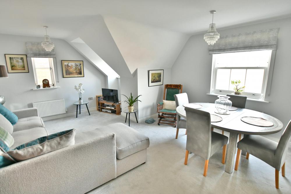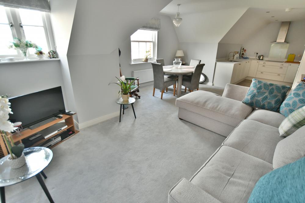 A well presented and spacious second floor purpose-built apartment with a lift, offering two bedrooms, stunning open plan kitchen/living/dining room, luxury en suite bathroom and two allocated parking spaces, located within walking distance of Wimborne town centre.