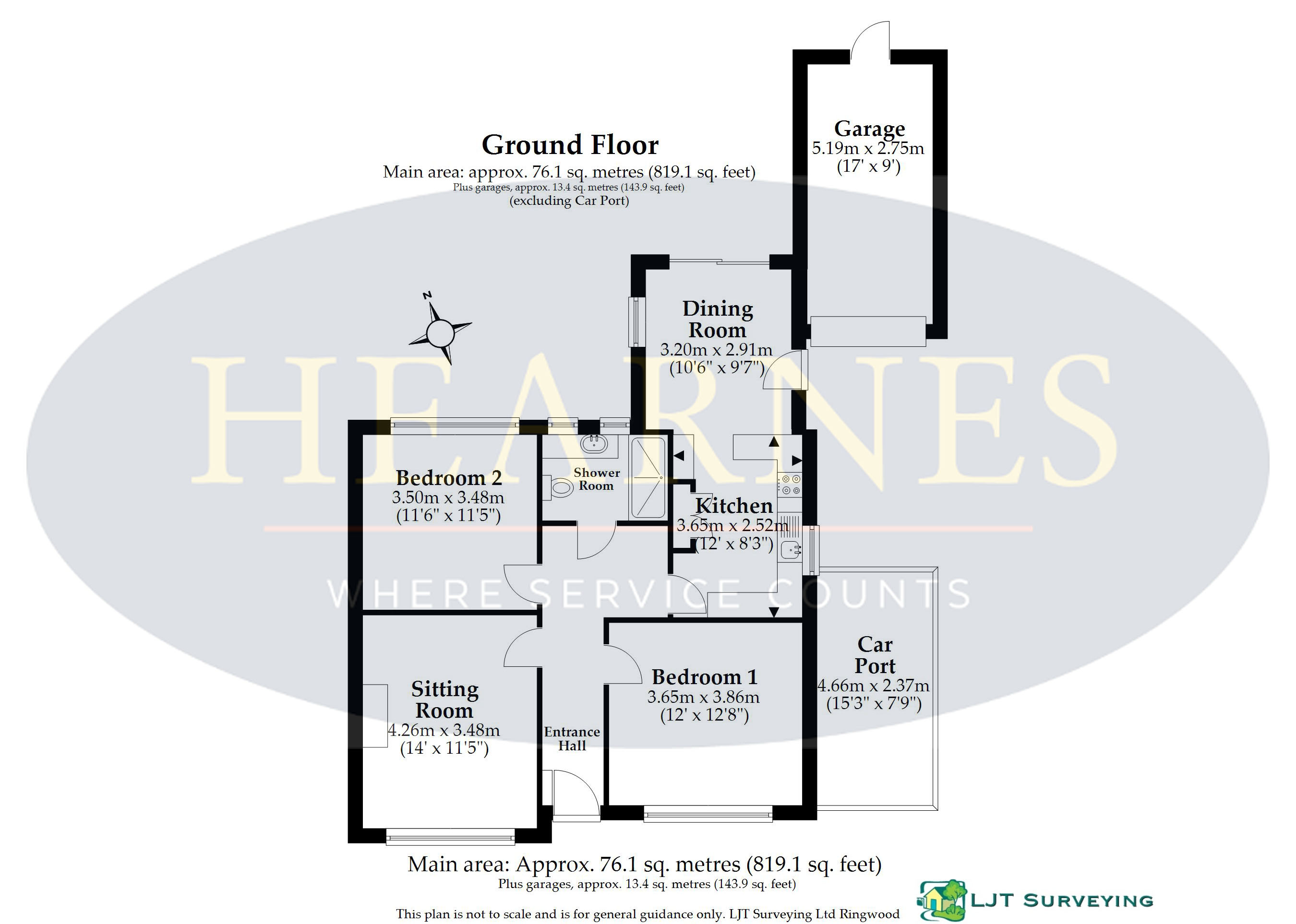 A well-proportioned two bedroom detached bungalow set in the centre of the plot offering a kitchen/diner, separate sitting room, shower room, garage, private garden and ample off-road parking, located in a quiet road within easy reach of local amenities and a bus stop. - Entrance hallway with loft access - Generous size kitchen/diner with sliding patio doors opening onto the garden and side access to the garage. The kitchen is finished in a range of wooden units with complementary worktops, four ring gas hob and space for washing machine and fridge freezer - Two double bedrooms: both with space for wardrobes - Sitting room with front aspect window overlooking the front garden - Shower room with walk in shower, wash hand basin set in a vanity unit and WC - Outside: this home is set back from the road with mature front and rear gardens including ample off-road parking and a garage. The rear garden offers a private feel with a range of mature shrubs and trees and large patio ideal for al fresco dining This sought after area of Colehill offers excellent schooling and local shops, parish church, library and hairdresser. The thriving town of Wimborne is approximately two miles away offering more extensive shopping and leisure facilities as well as numerous restaurants and public houses. EPC RATING: D COUNCIL TAX BAND: DAGENTS NOTES: The heating system, mains and appliances have not been tested by Hearnes Estate Agents. Any areas, measurements or distances are approximate. The text, photographs and plans are for guidance only and are not necessarily comprehensive. Whilst reasonable endeavours have been made to ensure that the information in our sales particulars are as accurate as possible, this information has been provided for us by the seller and is not guaranteed. Any intending buyer should not rely on the information we have supplied and should satisfy themselves by inspection, searches, enquiries and survey as to the correctness of each statement before making a financial or legal commitment. We have not checked the legal documentation to verify the legal status, including the leased term and ground rent and escalation of ground rent of the property (where applicable). A buyer must not rely upon the information provided until it has been verified by their own solicitors.
